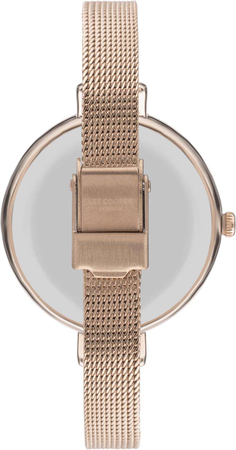 Женские наручные часы Lee Cooper LC07363.410 — это элегантная модель с утончённым дизайном. Корпус диаметром 36 мм выполнен из суперметалла с IP-покрытиемIP-покрытиеМетод ионного напыления. Демонстрирует повышенную устойчивость к истиранию, окислению и химическим веществам. Под воздействием высокого давления и температуры около 1500°C молекулы металла надёжно соединяются с частицами корпуса часов., что придаёт часам изысканный вид. Серебристый циферблат украшен изящными вставками из кристаллов и стрелками, обеспечивая удобное считывание времени. Циферблат защищён минеральным стекломМинеральное стеклоМинеральное стекло представляет собой искусственно выращенный минерал кварца. Такое стекло отличается особой устойчивостью к повреждениям и царапинам. Уступает по некоторым качествам сапфировому стеклу., устойчивым к царапинам. Часы работают на кварцевом механизме, обеспечивая точность хода. Браслет из нержавеющей стали с раскладной застёжкойРаскладная застёжкаТакой тип застёжки используется только на браслетах из металла. Она никогда не раскрывается полностью, происходит разделение на 2 и более частей. Раскладывающая застёжка снизит вероятность потери часов к минимуму. гарантирует комфортное ношение и надёжную фиксацию на запястье. Водозащита 30 метров защищает часы от случайных брызг и дождя, делая их подходящими для повседневного использования.