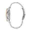 придаёт часам классический и современный вид. Чёрный циферблат оснащён дополнительными индикаторами и функцией хронографХронографФункция позволяет измерять отрезки времени с особой точностью: часы, минуты, секунды. Верным признаком хронографа является наличие на циферблате 3 дополнительных окошек-счётчиков., что позволяет измерять временные интервалы с высокой точностью. Стрелки и метки покрыты люминесцентным покрытиемЛюминесцентное покрытиеПозволяет считывать показания времени в темноте. Производители наносят на стрелки, часовые индексы, безель или поверхность циферблата светонакопительный состав, дающий холодное свечение., обеспечивая удобное считывание показаний в условиях недостаточного освещения. Циферблат защищён минеральным стекломМинеральное стеклоМинеральное стекло представляет собой искусственно выращенный минерал кварца. Такое стекло отличается особой устойчивостью к повреждениям и царапинам. Уступает по некоторым качествам сапфировому стеклу., устойчивым к царапинам. Часы работают на кварцевом механизме, обеспечивающем точность хода. Браслет из нержавеющей стали с раскладной застёжкойРаскладная застёжкаТакой тип застёжки используется только на браслетах из металла. Она никогда не раскрывается полностью, происходит разделение на 2 и более частей. Раскладывающая застёжка снизит вероятность потери часов к минимуму. гарантирует удобную посадку и надёжную фиксацию на запястье. Водозащита 30 метров защищает часы от брызг и дождя, делая их подходящими для повседневного использования.
