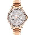 Женские часы Lee Cooper LC07512.420 — это стильное сочетание элегантности и современного дизайна. Круглый корпус диаметром 36 мм выполнен из суперметалла с IP-покрытиемIP-покрытиеМетод ионного напыления. Демонстрирует повышенную устойчивость к истиранию, окислению и химическим веществам. Под воздействием высокого давления и температуры около 1500°C молекулы металла надёжно соединяются с частицами корпуса часов. цвета розового золота, а неподвижный безельБезельВнешний ободок, закрепляющий стекло. В спортивных часах так называется поворотное кольцо с делениями на циферблате, выполняет роль таймера – замеряет отрезки времени на шкале. Неподвижный безель – элемент декора. Однонаправленно вращающийся безель на дайверских часах позволяет фиксировать моменты погружения и выныривания на поверхность. украшен цирконами, придающими модели особый блеск. Перламутровый циферблат защищен минеральным стекломМинеральное стеклоМинеральное стекло представляет собой искусственно выращенный минерал кварца. Такое стекло отличается особой устойчивостью к повреждениям и царапинам. Уступает по некоторым качествам сапфировому стеклу., обеспечивающим устойчивость к царапинам. Метки в виде штрихов. Часы оснащены надежным кварцевым механизмом, а металлический браслет с IP-покрытиемIP-покрытиеМетод ионного напыления. Демонстрирует повышенную устойчивость к истиранию, окислению и химическим веществам. Под воздействием высокого давления и температуры около 1500°C молекулы металла надёжно соединяются с частицами корпуса часов. на раскладной застёжкеРаскладная застёжкаТакой тип застёжки используется только на браслетах из металла. Она никогда не раскрывается полностью, происходит разделение на 2 и более частей. Раскладывающая застёжка снизит вероятность потери часов к минимуму. гарантирует комфортную посадку на запястье. Мультифункциональная модель с индикацией даты, дня недели, с дополнительным 24-х часовым индикатором. Стрелки и метки с люминесцентным покрытиемЛюминесцентное покрытиеПозволяет считывать показания времени в темноте. Производители наносят на стрелки, часовые индексы, безель или поверхность циферблата светонакопительный состав, дающий холодное свечение. позволяют легко считывать время даже в условиях недостаточного освещения. Водозащита 30 метров защищает модель от случайных брызг и дождя. Lee Cooper — отличный выбор для тех, кто ценит утонченность и качество.