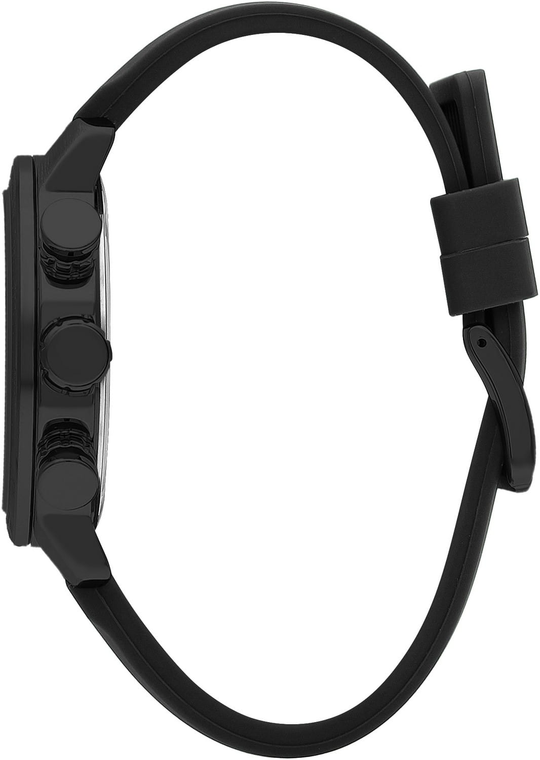 Lee Cooper LC07631.651 — элегантная модель с функциональными возможностями для повседневного использования. Корпус из суперметалла с IP-покрытиемIP-покрытиеМетод ионного напыления. Демонстрирует повышенную устойчивость к истиранию, окислению и химическим веществам. Под воздействием высокого давления и температуры около 1500°C молекулы металла надёжно соединяются с частицами корпуса часов. черного цвета и диаметром 49 мм придаёт часам классический и современный вид. Циферблат защищён минеральным стекломМинеральное стеклоМинеральное стекло представляет собой искусственно выращенный минерал кварца. Такое стекло отличается особой устойчивостью к повреждениям и царапинам. Уступает по некоторым качествам сапфировому стеклу., устойчивым к царапинам, хорошо может выдержать небольшие удары и падения. Стильный циферблат оформлен изысканными индексами и дополнен окошками даты, дня недели и 24-часового индикатора, а также аккуратными метками и стрелками с люминесцентным покрытиемЛюминесцентное покрытиеПозволяет считывать показания времени в темноте. Производители наносят на стрелки, часовые индексы, безель или поверхность циферблата светонакопительный состав, дающий холодное свечение., что гарантирует читаемость даже в условиях недостаточного освещения. Функция второго часового поясаВторой часовой поясФункция, позволяющая отображать время двух часовых поясов одновременно. делает часы удобными для путешественников. Часы работают на кварцевом механизме, обеспечивающем точность хода. Каучуковый ремешок на стандартной застёжке гарантирует удобную посадку и надёжную фиксацию на запястье. Водозащита 50 метров защищает часы от брызг и дождя, делая их подходящими для повседневного использования.