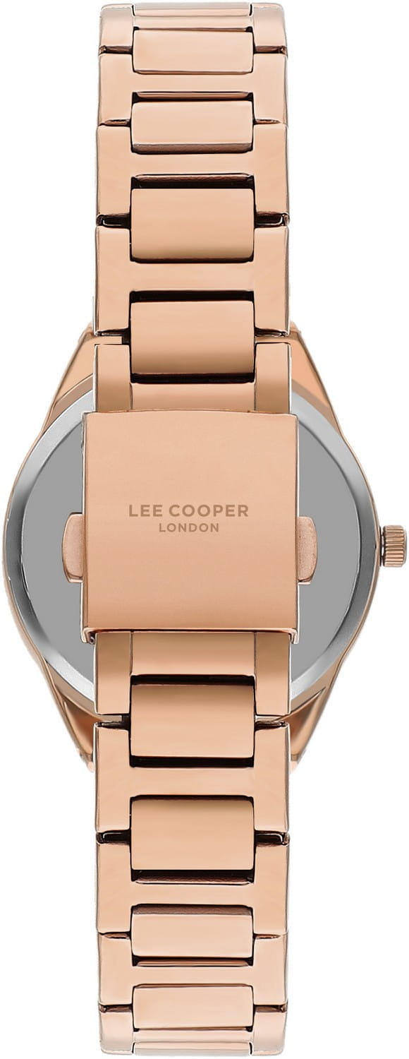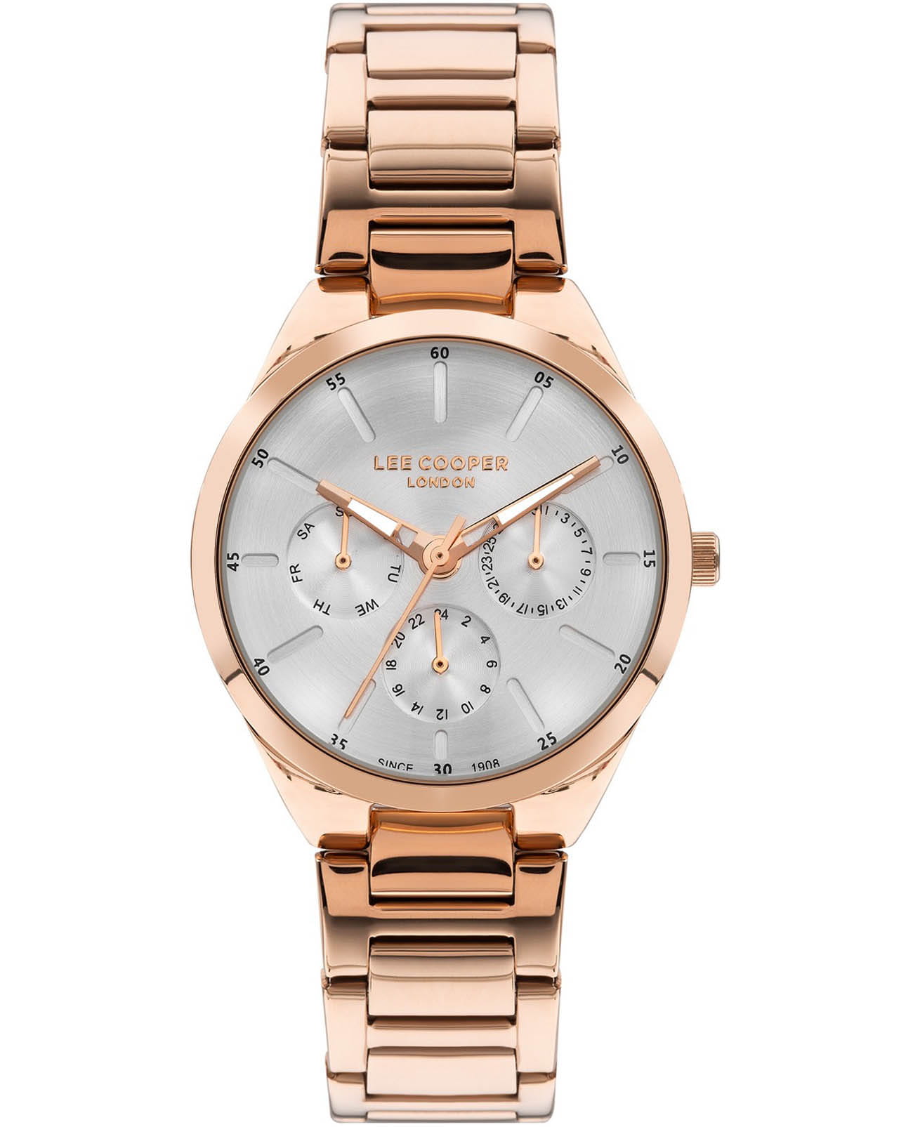 Женские часы Lee Cooper LC07643.430 — это стильное сочетание элегантности и современного дизайна. Круглый корпус диаметром 36 мм выполнен из суперметалла с IP-покрытиемIP-покрытиеМетод ионного напыления. Демонстрирует повышенную устойчивость к истиранию, окислению и химическим веществам. Под воздействием высокого давления и температуры около 1500°C молекулы металла надёжно соединяются с частицами корпуса часов. золотого цвета, придающий модели особый блеск. Серебристый циферблат защищен минеральным стекломМинеральное стеклоМинеральное стекло представляет собой искусственно выращенный минерал кварца. Такое стекло отличается особой устойчивостью к повреждениям и царапинам. Уступает по некоторым качествам сапфировому стеклу., обеспечивающим устойчивость к царапинам. Часы оснащены надежным кварцевым механизмом, а стальной браслет с IP-покрытиемIP-покрытиеМетод ионного напыления. Демонстрирует повышенную устойчивость к истиранию, окислению и химическим веществам. Под воздействием высокого давления и температуры около 1500°C молекулы металла надёжно соединяются с частицами корпуса часов. на раскладной застёжкеРаскладная застёжкаТакой тип застёжки используется только на браслетах из металла. Она никогда не раскрывается полностью, происходит разделение на 2 и более частей. Раскладывающая застёжка снизит вероятность потери часов к минимуму. гарантирует комфортную посадку на запястье. Мультифункциональная модель с индикацией даты, дня недели, с дополнительным 24-х часовым индикатором. Стрелки с люминесцентным покрытиемЛюминесцентное покрытиеПозволяет считывать показания времени в темноте. Производители наносят на стрелки, часовые индексы, безель или поверхность циферблата светонакопительный состав, дающий холодное свечение. позволяют легко считывать время даже в условиях недостаточного освещения. Водозащита 30 метров защищает модель от случайных брызг и дождя. Lee Cooper  — отличный выбор для тех, кто ценит утонченность и качество.