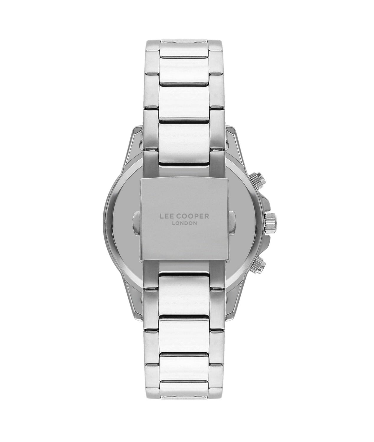 Lee Cooper LC07817.380 — элегантная модель с функциональными возможностями для повседневного использования. Корпус из суперметалла и диаметром 45 мм придаёт часам классический и современный вид. Циферблат защищён минеральным стекломМинеральное стеклоМинеральное стекло представляет собой искусственно выращенный минерал кварца. Такое стекло отличается особой устойчивостью к повреждениям и царапинам. Уступает по некоторым качествам сапфировому стеклу., устойчивым к царапинам, хорошо может выдержать небольшие удары и падения. Стильный циферблат оформлен изысканными индексами и дополнен окошками даты, дня недели и 24-часового индикатора, а также аккуратными метками и стрелками с люминесцентным покрытиемЛюминесцентное покрытиеПозволяет считывать показания времени в темноте. Производители наносят на стрелки, часовые индексы, безель или поверхность циферблата светонакопительный состав, дающий холодное свечение., что гарантирует читаемость даже в условиях недостаточного освещения. Часы работают на кварцевом механизме, обеспечивающем точность хода. Стальной браслет на раскладной застёжкеРаскладная застёжкаТакой тип застёжки используется только на браслетах из металла. Она никогда не раскрывается полностью, происходит разделение на 2 и более частей. Раскладывающая застёжка снизит вероятность потери часов к минимуму. гарантирует удобную посадку и надёжную фиксацию на запястье. Водозащита 50 метров защищает часы от брызг и дождя, делая их подходящими для повседневного использования.