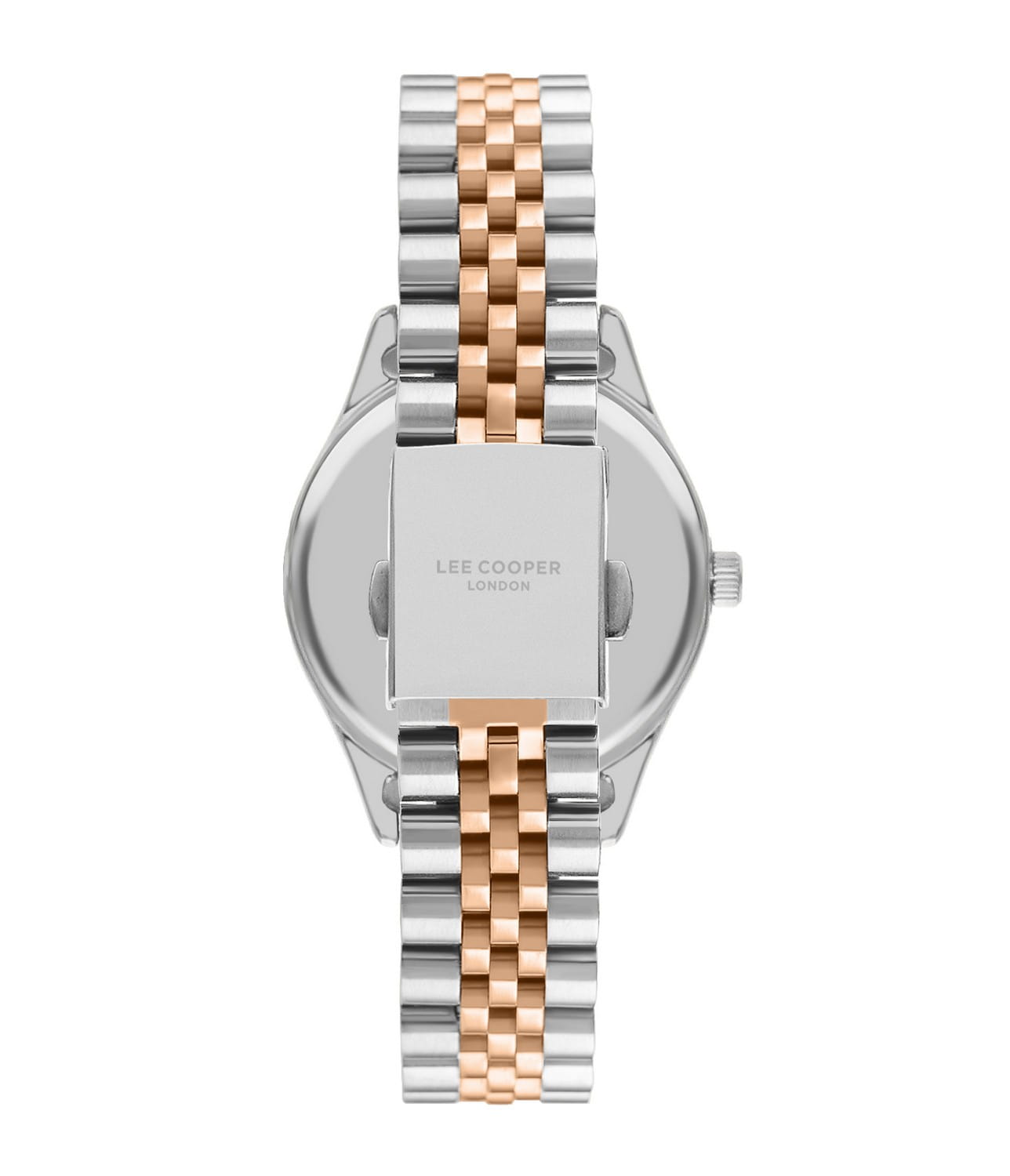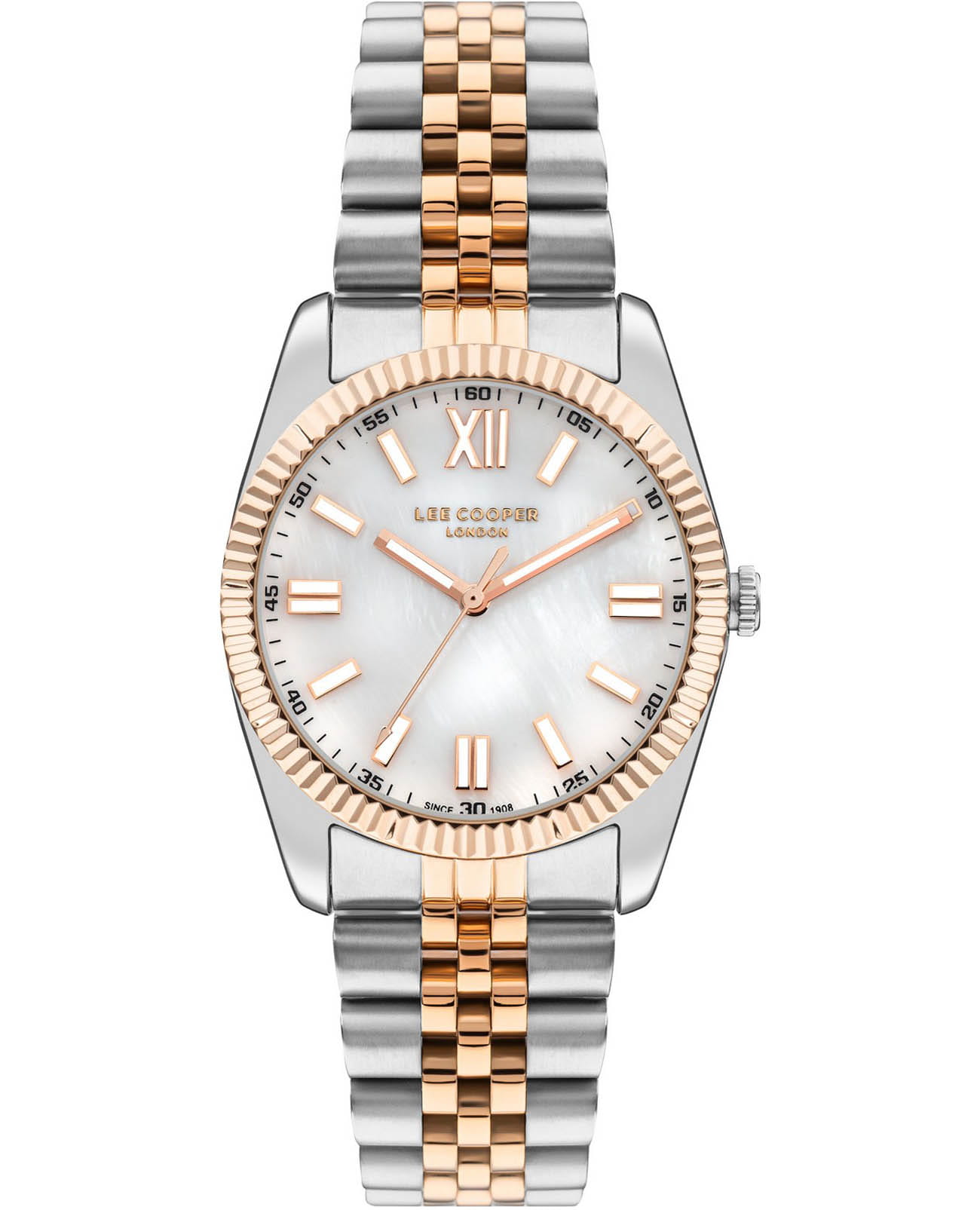Женские часы Lee Cooper LC07824.520 выполнены в классическом стиле и сочетают строгий дизайн с надёжным механизмом. Модель оснащена кварцевым механизмом, обеспечивающим точность хода и минимальное обслуживание. Корпус c диаметром 36 мм, изготовлен из суперметалла с изысканным неподвижным безелемБезельВнешний ободок, закрепляющий стекло. В спортивных часах так называется поворотное кольцо с делениями на циферблате, выполняет роль таймера – замеряет отрезки времени на шкале. Неподвижный безель – элемент декора. Однонаправленно вращающийся безель на дайверских часах позволяет фиксировать моменты погружения и выныривания на поверхность. с IP-покрытиемIP-покрытиеМетод ионного напыления. Демонстрирует повышенную устойчивость к истиранию, окислению и химическим веществам. Под воздействием высокого давления и температуры около 1500°C молекулы металла надёжно соединяются с частицами корпуса часов., гарантирует комфорт при ношении. Перламутровый циферблат дополнен штрихами и римскими цифрами для чёткого отсчёта времени. Защиту циферблата обеспечивает минеральное стеклоМинеральное стеклоМинеральное стекло представляет собой искусственно выращенный минерал кварца. Такое стекло отличается особой устойчивостью к повреждениям и царапинам. Уступает по некоторым качествам сапфировому стеклу., устойчивое к мелким механическим повреждениям. Стальной браслет с частичным IP-покрытиемIP-покрытиеМетод ионного напыления. Демонстрирует повышенную устойчивость к истиранию, окислению и химическим веществам. Под воздействием высокого давления и температуры около 1500°C молекулы металла надёжно соединяются с частицами корпуса часов. на раскладной застёжкеРаскладная застёжкаТакой тип застёжки используется только на браслетах из металла. Она никогда не раскрывается полностью, происходит разделение на 2 и более частей. Раскладывающая застёжка снизит вероятность потери часов к минимуму. гарантирует удобную посадку и надёжную фиксацию на запястье. Стрелки и метки с люминесцентным покрытиемЛюминесцентное покрытиеПозволяет считывать показания времени в темноте. Производители наносят на стрелки, часовые индексы, безель или поверхность циферблата светонакопительный состав, дающий холодное свечение., обеспечивающим хорошую читаемость в темноте. Водозащита 30WR позволяет использовать часы в повседневных условиях без риска повреждения от случайных брызг воды. Это сочетание классического дизайна, прочности материалов и качества исполнения для уверенных в себе женщин.