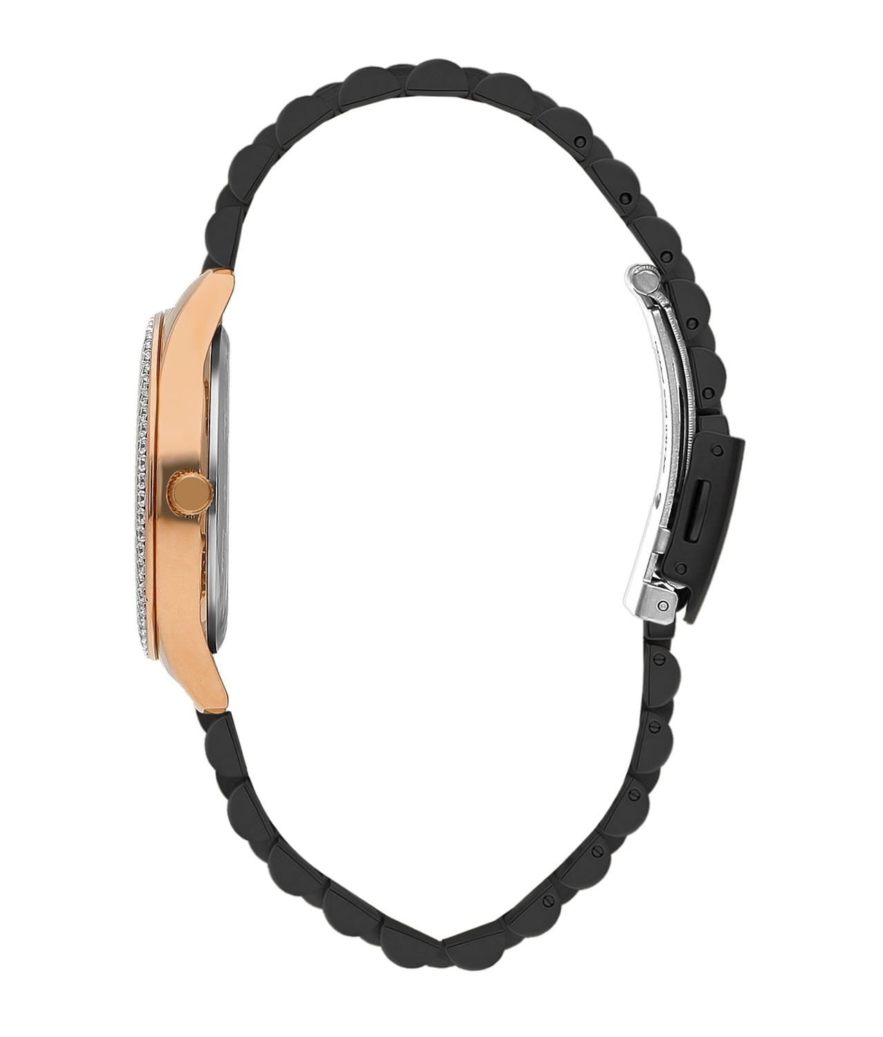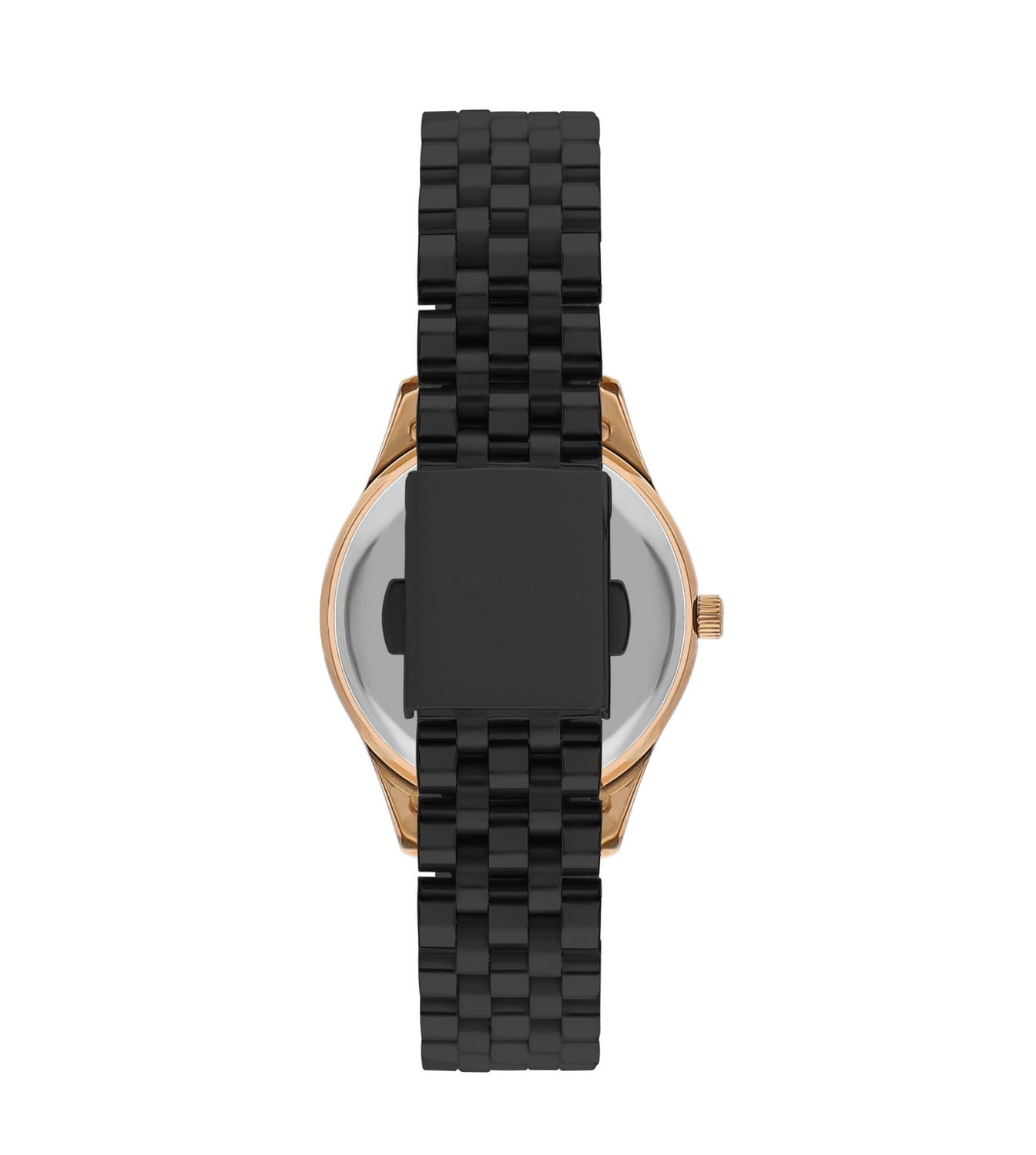 Женские часы Lee Cooper LC07826.450 выполнены в классическом стиле и сочетают строгий дизайн с надёжным механизмом. Модель оснащена кварцевым механизмом, обеспечивающим точность хода и минимальное обслуживание. Корпус круглой формы имеет размер 35 мм, изготовлен из суперметалла с IP-покрытиемIP-покрытиеМетод ионного напыления. Демонстрирует повышенную устойчивость к истиранию, окислению и химическим веществам. Под воздействием высокого давления и температуры около 1500°C молекулы металла надёжно соединяются с частицами корпуса часов. и с изысканным неподвижным безелемБезельВнешний ободок, закрепляющий стекло. В спортивных часах так называется поворотное кольцо с делениями на циферблате, выполняет роль таймера – замеряет отрезки времени на шкале. Неподвижный безель – элемент декора. Однонаправленно вращающийся безель на дайверских часах позволяет фиксировать моменты погружения и выныривания на поверхность. с вставками из циркона, гарантирует комфорт при ношении. Циферблат дополнен изящными вставками из циркона для чёткого отсчёта времени. Защиту циферблата обеспечивает минеральное стеклоМинеральное стеклоМинеральное стекло представляет собой искусственно выращенный минерал кварца. Такое стекло отличается особой устойчивостью к повреждениям и царапинам. Уступает по некоторым качествам сапфировому стеклу., устойчивое к мелким механическим повреждениям. Стрелки с люминесцентным покрытиемЛюминесцентное покрытиеПозволяет считывать показания времени в темноте. Производители наносят на стрелки, часовые индексы, безель или поверхность циферблата светонакопительный состав, дающий холодное свечение.. Стальной браслет с IP-покрытиемIP-покрытиеМетод ионного напыления. Демонстрирует повышенную устойчивость к истиранию, окислению и химическим веществам. Под воздействием высокого давления и температуры около 1500°C молекулы металла надёжно соединяются с частицами корпуса часов. на раскладной застёжкеРаскладная застёжкаТакой тип застёжки используется только на браслетах из металла. Она никогда не раскрывается полностью, происходит разделение на 2 и более частей. Раскладывающая застёжка снизит вероятность потери часов к минимуму. гарантирует удобную посадку и надёжную фиксацию на запястье. Водозащита 30WR позволяет использовать часы в повседневных условиях без риска повреждения от случайных брызг воды. Это сочетание классического дизайна, прочности материалов и качества исполнения для уверенных в себе женщин.