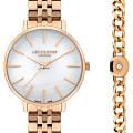 Женские часы Lee Cooper LC07857.420 — это стильное сочетание элегантности и современного дизайна. Изящный круглый корпус диаметром 34 мм выполнен из суперметалла с IP-покрытиемIP-покрытиеМетод ионного напыления. Демонстрирует повышенную устойчивость к истиранию, окислению и химическим веществам. Под воздействием высокого давления и температуры около 1500°C молекулы металла надёжно соединяются с частицами корпуса часов. золотого цвета, что придает модели особый блеск. Розовый циферблат защищен минеральным стекломМинеральное стеклоМинеральное стекло представляет собой искусственно выращенный минерал кварца. Такое стекло отличается особой устойчивостью к повреждениям и царапинам. Уступает по некоторым качествам сапфировому стеклу., обеспечивающим устойчивость к царапинам. Метки в виде штрихов. Часы оснащены надежным кварцевым механизмом, а стальной браслет с IP-покрытиемIP-покрытиеМетод ионного напыления. Демонстрирует повышенную устойчивость к истиранию, окислению и химическим веществам. Под воздействием высокого давления и температуры около 1500°C молекулы металла надёжно соединяются с частицами корпуса часов. золотого цвета на раскладной застёжкеРаскладная застёжкаТакой тип застёжки используется только на браслетах из металла. Она никогда не раскрывается полностью, происходит разделение на 2 и более частей. Раскладывающая застёжка снизит вероятность потери часов к минимуму. гарантирует комфортную посадку на запястье. Водозащита 30 метров защищает модель от случайных брызг и дождя. В комплекте к часам идет дополнительный браслет в цвет часов. Lee Cooper  — отличный выбор для тех, кто ценит утонченность и качество.