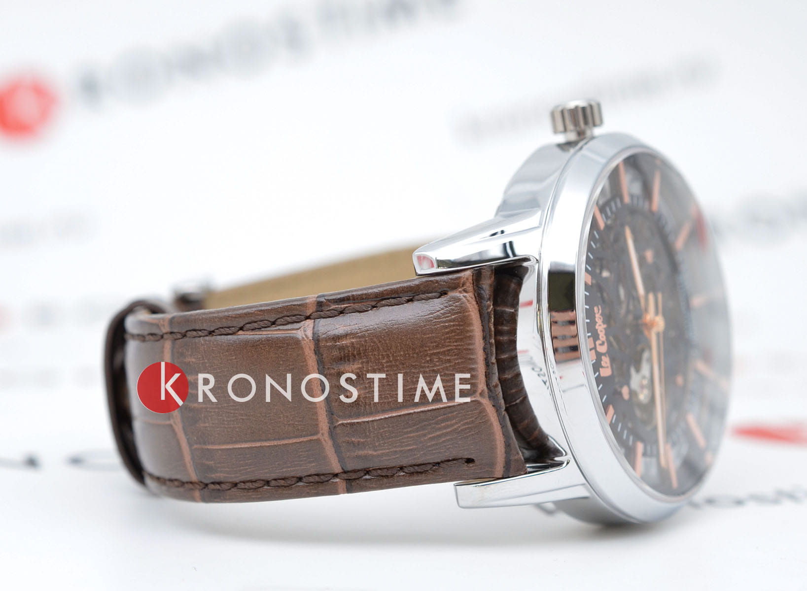 Мужские наручные часы Lee Cooper LC08035.344 — это стильная модель, сочетающая в себе современный дизайн и функциональность. Корпус часов выполнен из суперметалла серебристого цвета, что делает их устойчивыми к внешним воздействиям и придает благородный вид. Часы оснащены автоподзаводом калибра G3265ZH, который заряжается от движения руки и обеспечивает высокую точность хода. Коричневый циферблат украшен скелетонизированным дизайном, позволяющим наблюдать за работой механизма, что делает часы не только функциональными, но и визуально привлекательными. Для защиты циферблата используется минеральное стеклоМинеральное стеклоМинеральное стекло представляет собой искусственно выращенный минерал кварца. Такое стекло отличается особой устойчивостью к повреждениям и царапинам. Уступает по некоторым качествам сапфировому стеклу., устойчивое к царапинам и механическим повреждениям. Корпус имеет круглую форму диаметром 44 мм, что делает часы заметными и подходящими для повседневного ношения. Ремешок из натуральной кожи с тиснением "под крокодила". Застежка стандартная классическая. Модель обладает водонепроницаемостью до 50 метров (5 АТМ), что позволяет использовать часы в повседневной жизни, включая контакт с водой при мытье рук или дожде. Эти часы станут идеальным выбором для мужчин, ценящих стиль, качество и функциональность.