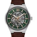 Мужские наручные часы Lee Cooper Мужские наручные часы Lee Cooper LC08050.354 — это стильная модель, сочетающая в себе современный дизайн и функциональность. Корпус часов выполнен из нержавеющей стали серебристого цвета, что делает их устойчивыми к внешним воздействиям и придает благородный вид. Часы оснащены автоподзаводом калибра G3265ZH, который заряжается от движения руки и обеспечивает высокую точность хода. Серо-зеленый циферблат украшен скелетонизированным дизайном, позволяющим наблюдать за работой механизма, что делает часы не только функциональными, но и визуально привлекательными. Для защиты циферблата используется минеральное стеклоМинеральное стеклоМинеральное стекло представляет собой искусственно выращенный минерал кварца. Такое стекло отличается особой устойчивостью к повреждениям и царапинам. Уступает по некоторым качествам сапфировому стеклу., устойчивое к царапинам и механическим повреждениям. Корпус имеет круглую форму диаметром 43 мм, что делает часы заметными и подходящими для повседневного ношения. Ремешок из натуральной кожи с тиснением "под крокодила". Застежка стандартная классическая. Модель обладает водонепроницаемостью до 50 метров (5 АТМ), что позволяет использовать часы в повседневной жизни, включая контакт с водой при мытье рук или дожде. Эти часы станут идеальным выбором для мужчин, ценящих стиль, качество и функциональность.