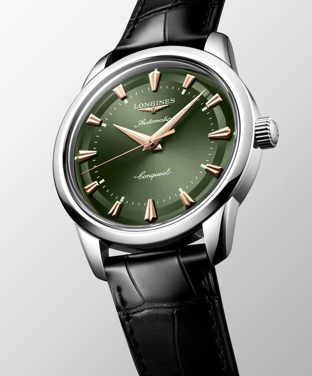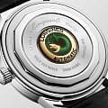 Longines Conquest Heritage L1.650.4.02.2 — это воплощение классической элегантности и швейцарского совершенства, объединяющее в себе богатое наследие марки и современные технологии. Корпус часов выполнен из высококачественной нержавеющей стали диаметром 40 мм и украшен оригинальным медальоном из золота 18 карат с изображением рыбы на задней крышке, что подчеркивает исключительность этой модели. Зеленый циферблат с полированной поверхностью, украшенный изящными накладными индексами в виде штрихов, создает благородный акцент и идеально сочетается с кожаным ремешком глубокого черного оттенка, дополненным надежной стальной застежкой. Также на циферблате располагаются полированные стрелки с люминесцентным покрытиемЛюминесцентное покрытиеПозволяет считывать показания времени в темноте. Производители наносят на стрелки, часовые индексы, безель или поверхность циферблата светонакопительный состав, дающий холодное свечение. Swiss Super-LumiNova для отличной читаемости в любое время суток. Механизм с автоподзаводом калибра L888 обеспечивает точность хода и запас хода до 72 часов, а устойчивость к магнитным полям гарантирует стабильную работу даже в насыщенных электромагнитных условиях. Сапфировое стеклоСапфировое стеклоПрочный и надёжный материал из кристалла сапфира синтетического происхождения, характеризующийся особой твёрдостью и устойчивостью к царапинам и повреждениям. с двусторонним многослойным антибликовым покрытием надежно защищает циферблат от царапин и бликов, сохраняя безупречный внешний вид на долгие годы. Часы выдерживают давление до 5 бар (50 метров), что позволяет не снимать их во время мытья рук или прогулок под дождем. Завинчивающаяся заводная головка и продуманная конструкция корпуса подчеркивают высокий уровень исполнения каждой детали.