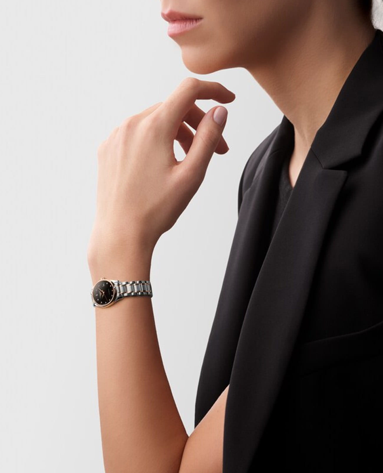 . Циферблат с 12 бриллиантами группы Top Wesselton VS-SI общим весом 0.034 карата. Окошко даты в положении 3 часов. Прозрачная задняя крышка. Класс водозащиты: 30 метров, позволит защитить корпус от случайных брызг или капель дождя. Стальной браслет с частичным 18-каратным золотом18-каратное золотоОбозначение по каратной системе пробирования, оно показывает, сколько драгоценного металла содержится в изделии. 18 карат - в составе 75% чистого золота, соответствует 750 пробе.