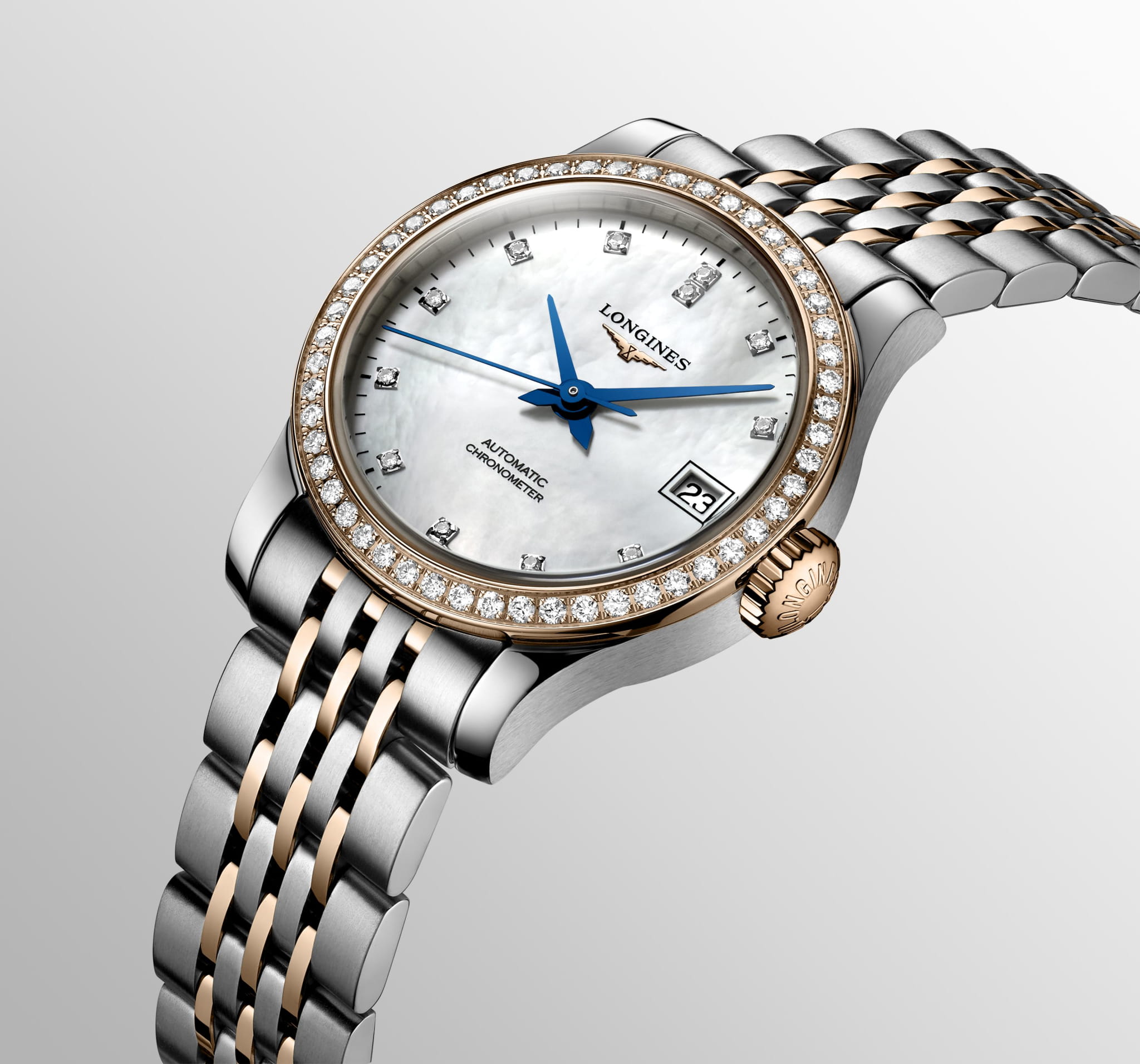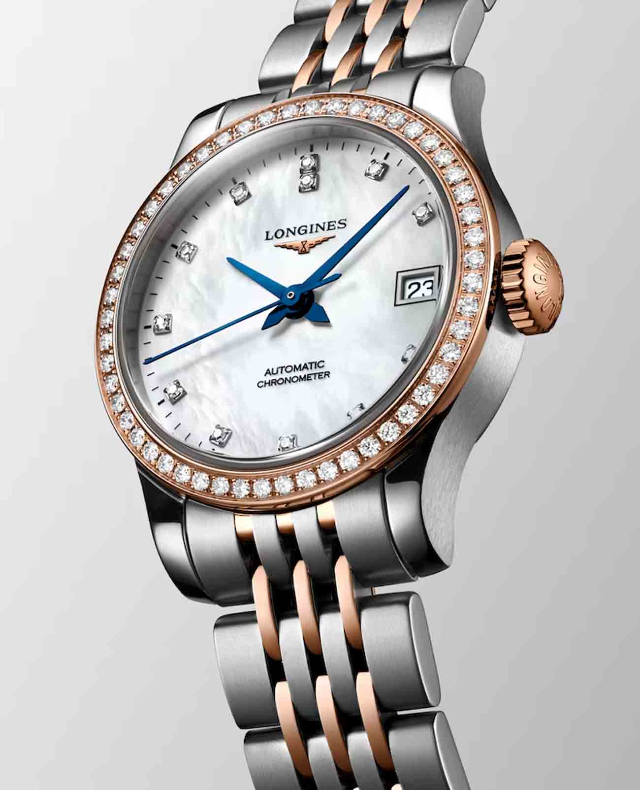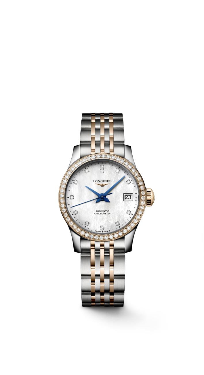 Женские швейцарские механические часы Longines Record Collection L2.320.5.89.7 – идеальное украшение образа. Швейцарский автоматический механизм L592.4 с резервом хода до 40 часов за высокую точность хода отмечен официальным сертификатом хронометра COSCСертификат COSCОфициальный сертификат, подтверждающий то, что часы ходят с особо высокой точностью. Для получения документа часы подвергаются тестовым испытаниям, разработанным швейцарским институтом тестирования хронометров COSC. Допустимая норма для механических часов -4/+6 секунд в день, для кварцевых моделей +/- 0,07 секунд в день.. Сапфировое стеклоСапфировое стеклоПрочный и надёжный материал из кристалла сапфира синтетического происхождения, характеризующийся особой твёрдостью и устойчивостью к царапинам и повреждениям. дополнено антибликовым покрытиемАнтибликовое покрытиеСлой оксида металла в 0,13-0,3 микрон, благодаря которому стекло часов не бликует и не отражает свет. Антибликовое покрытие уменьшает отражение света в 10 раз, обеспечивая отличную читаемость показателей циферблата.. Корпус выполнен из стали. БезельБезельВнешний ободок, закрепляющий стекло. В спортивных часах так называется поворотное кольцо с делениями на циферблате, выполняет роль таймера – замеряет отрезки времени на шкале. Неподвижный безель – элемент декора. Однонаправленно вращающийся безель на дайверских часах позволяет фиксировать моменты погружения и выныривания на поверхность. из 18-ти каратного золота18-каратное золотоОбозначение по каратной системе пробирования, оно показывает, сколько драгоценного металла содержится в изделии. 18 карат - в составе 75% чистого золота, соответствует 750 пробе.