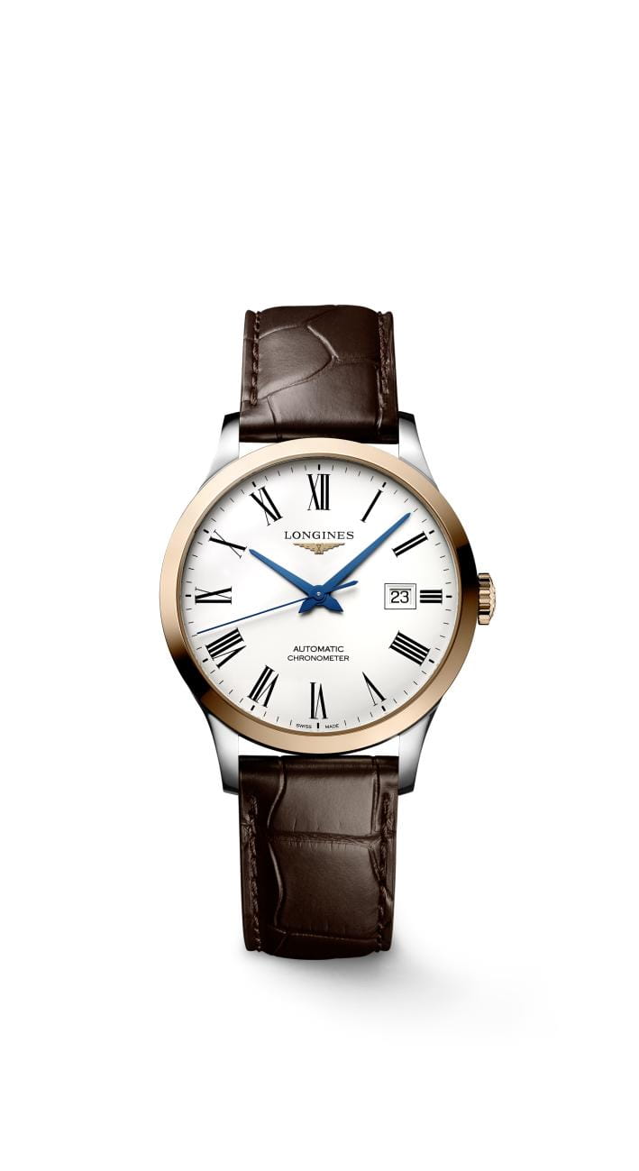 Женские швейцарские механические часы Longines Record Collection L2.321.5.11.2 – идеальное украшение образа. Швейцарский автоматический механизм L592.4 с резервом хода до 40 часов за высокую точность хода отмечен официальным сертификатом хронометра COSCСертификат COSCОфициальный сертификат, подтверждающий то, что часы ходят с особо высокой точностью. Для получения документа часы подвергаются тестовым испытаниям, разработанным швейцарским институтом тестирования хронометров COSC. Допустимая норма для механических часов -4/+6 секунд в день, для кварцевых моделей +/- 0,07 секунд в день.. Сапфировое стеклоСапфировое стеклоПрочный и надёжный материал из кристалла сапфира синтетического происхождения, характеризующийся особой твёрдостью и устойчивостью к царапинам и повреждениям. дополнено антибликовым покрытиемАнтибликовое покрытиеСлой оксида металла в 0,13-0,3 микрон, благодаря которому стекло часов не бликует и не отражает свет. Антибликовое покрытие уменьшает отражение света в 10 раз, обеспечивая отличную читаемость показателей циферблата.. Корпус выполнен из стали. БезельБезельВнешний ободок, закрепляющий стекло. В спортивных часах так называется поворотное кольцо с делениями на циферблате, выполняет роль таймера – замеряет отрезки времени на шкале. Неподвижный безель – элемент декора. Однонаправленно вращающийся безель на дайверских часах позволяет фиксировать моменты погружения и выныривания на поверхность. из 18-ти каратного золота18-каратное золотоОбозначение по каратной системе пробирования, оно показывает, сколько драгоценного металла содержится в изделии. 18 карат - в составе 75% чистого золота, соответствует 750 пробе.