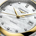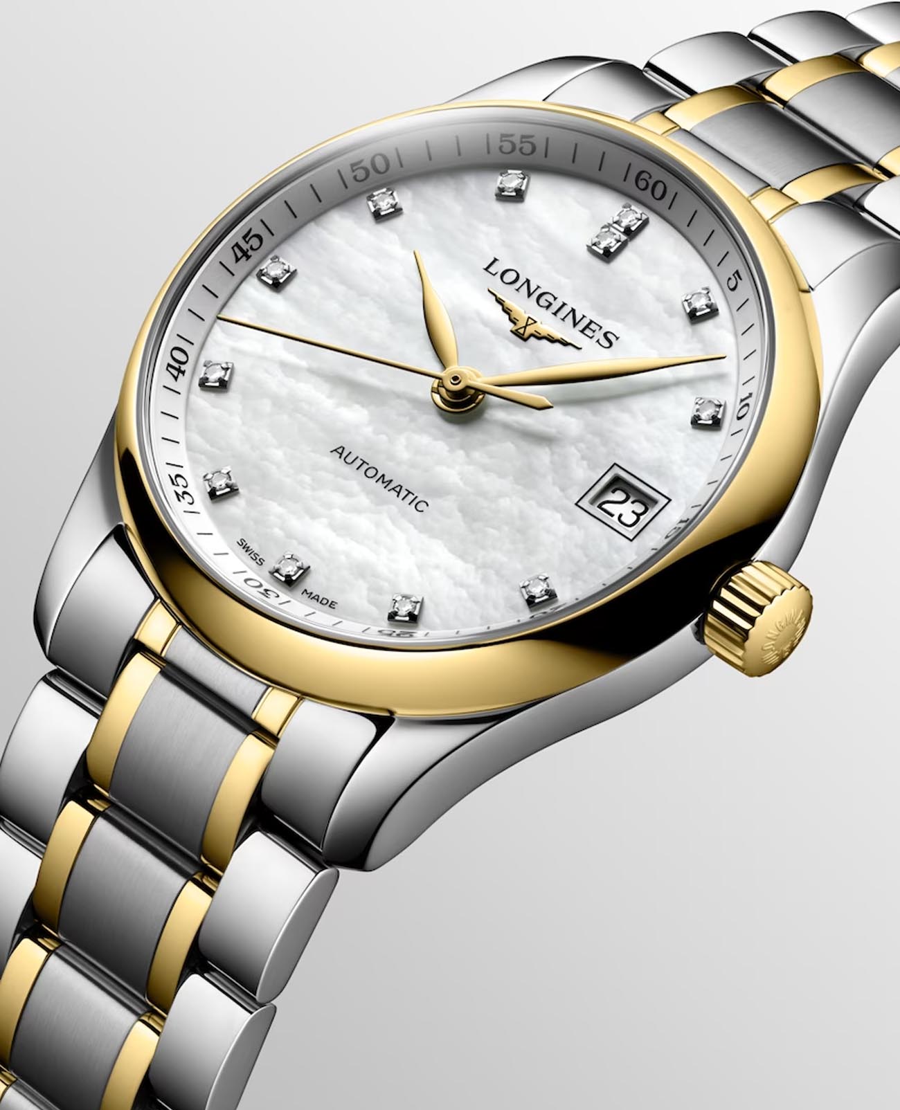 Женские швейцарские механические часы с автоподзаводом Longines Master Collection L2.357.5.87.7. Сапфировое стеклоСапфировое стеклоПрочный и надёжный материал из кристалла сапфира синтетического происхождения, характеризующийся особой твёрдостью и устойчивостью к царапинам и повреждениям. устойчивое к появлению царапин, обладающее высокой прозрачностью. Корпус часов изготовлен из нержавеющей стали. БезельБезельВнешний ободок, закрепляющий стекло. В спортивных часах так называется поворотное кольцо с делениями на циферблате, выполняет роль таймера – замеряет отрезки времени на шкале. Неподвижный безель – элемент декора. Однонаправленно вращающийся безель на дайверских часах позволяет фиксировать моменты погружения и выныривания на поверхность. с 18-каратным золотом18-каратное золотоОбозначение по каратной системе пробирования, оно показывает, сколько драгоценного металла содержится в изделии. 18 карат - в составе 75% чистого золота, соответствует 750 пробе.