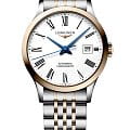 Мужские швейцарские механические часы с автоподзаводом Longines Record Collection L2.821.5.11.7. Сапфировое стеклоСапфировое стеклоПрочный и надёжный материал из кристалла сапфира синтетического происхождения, характеризующийся особой твёрдостью и устойчивостью к царапинам и повреждениям. устойчивое к появлению царапин, обладающее высокой прозрачностью. Корпус изготовлен из нержавещей стали с 18-каратным золотом18-каратное золотоОбозначение по каратной системе пробирования, оно показывает, сколько драгоценного металла содержится в изделии. 18 карат - в составе 75% чистого золота, соответствует 750 пробе.