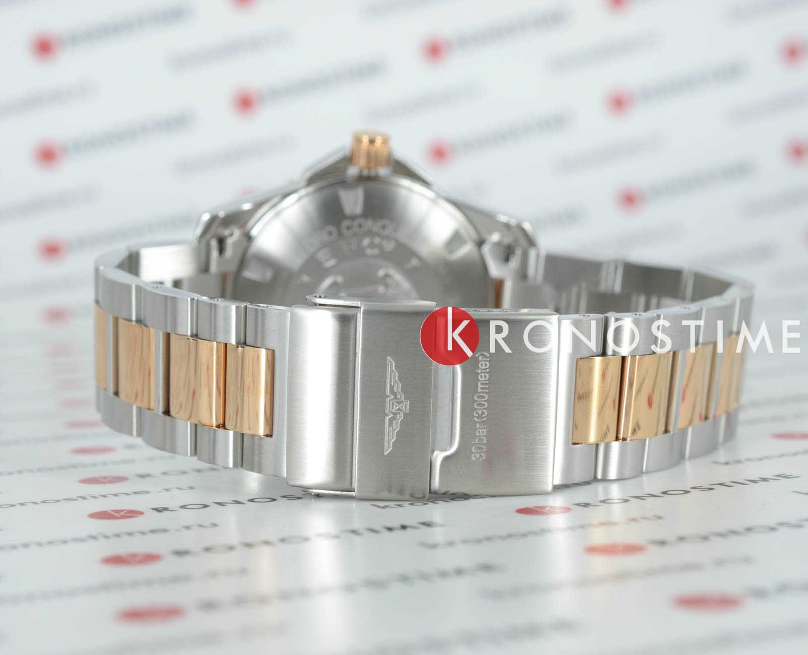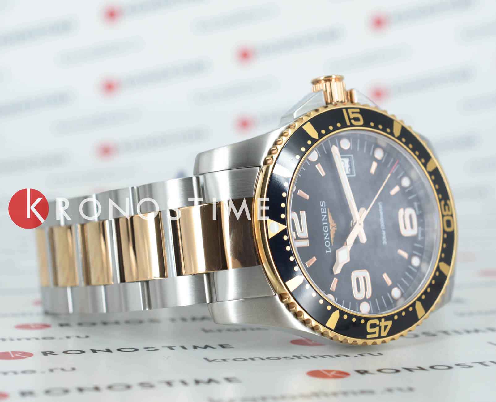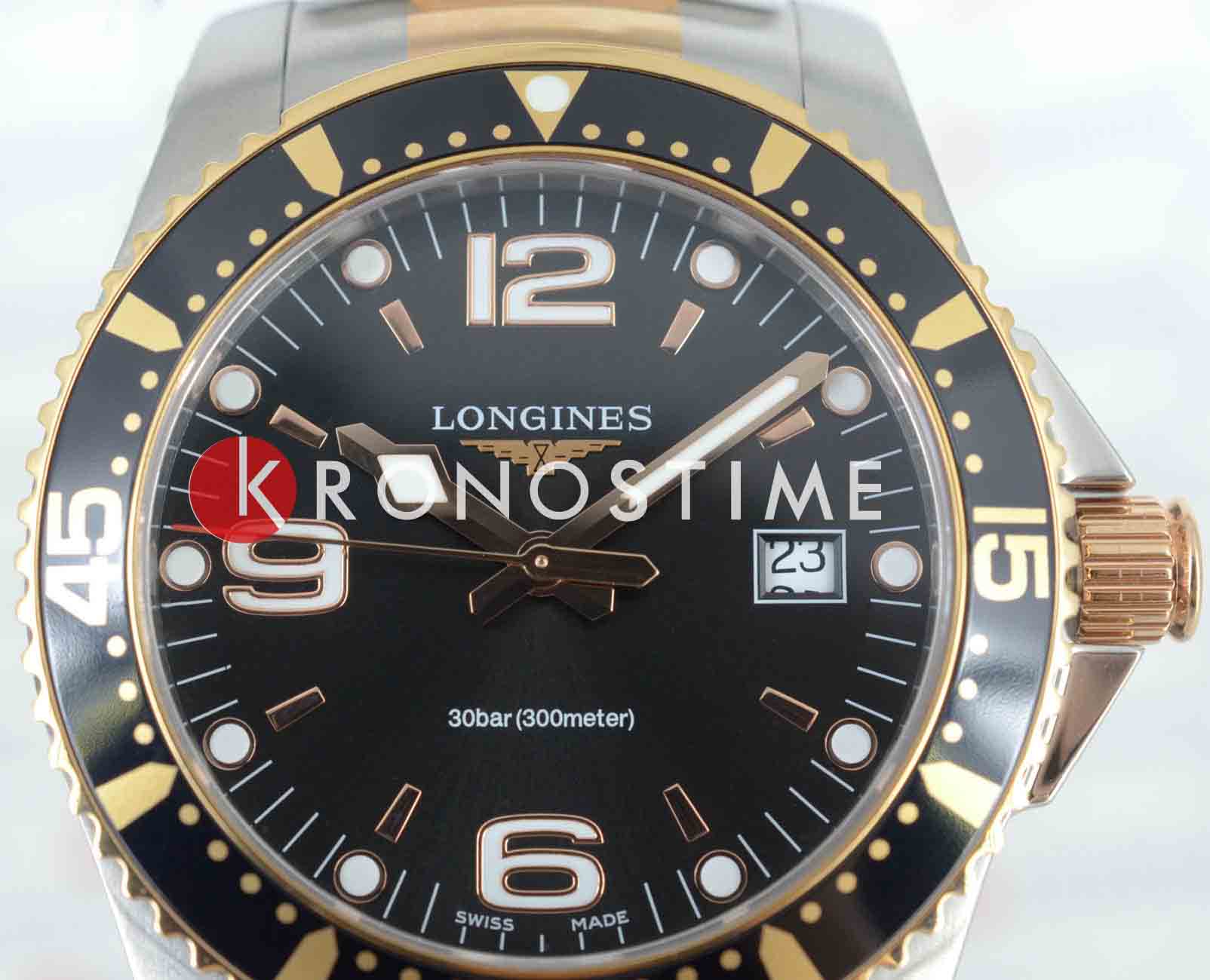 Longines L3.740.3.58.7 – это стильные швейцарские часы с кварцевым механизмом, которые сочетают в себе надежность, функциональность и современный дизайн. Корпус диаметром 41 мм выполнен из нержавеющей стали. Важной деталью является вращающийся стальной безельБезельВнешний ободок, закрепляющий стекло. В спортивных часах так называется поворотное кольцо с делениями на циферблате, выполняет роль таймера – замеряет отрезки времени на шкале. Неподвижный безель – элемент декора. Однонаправленно вращающийся безель на дайверских часах позволяет фиксировать моменты погружения и выныривания на поверхность., изготовленный из комбинации нержавеющей стали с розово-золотистым PVD-покрытиемPVDУльтратонкое покрытие наносится в технике вакуумного напыления, сочетает в себе нитрид титана особой прочности со слоем золота или оксида хрома. Несёт в себе декоративную или защитную функцию.. А центральный ряд звеньев браслета украшен элегантным PVD-покрытиемPVDУльтратонкое покрытие наносится в технике вакуумного напыления, сочетает в себе нитрид титана особой прочности со слоем золота или оксида хрома. Несёт в себе декоративную или защитную функцию. цвета розового золота. Часы оснащены сапфировым стекломСапфировое стеклоПрочный и надёжный материал из кристалла сапфира синтетического происхождения, характеризующийся особой твёрдостью и устойчивостью к царапинам и повреждениям. с антибликовым покрытиемАнтибликовое покрытиеСлой оксида металла в 0,13-0,3 микрон, благодаря которому стекло часов не бликует и не отражает свет. Антибликовое покрытие уменьшает отражение света в 10 раз, обеспечивая отличную читаемость показателей циферблата., устойчивым к царапинам и обеспечивающим отличную видимость циферблата при любом освещении. На черном циферблате находятся индикатор даты и функция EOLEOLПредставляет собой систему, уведомляющую владельца часов о необходимости замены элемента питания. За 2 недели до полного разряда батарейки секундная стрелка перестаёт ходить чётко и начинает перепрыгивать на 3-4 деления., позволяющая своевременно определить разряд батарейки. Завинчивающиеся задняя крышка и заводная головка повышают уровень водостойкости до 30 бар (300 метров), что делает часы подходящими для плавания и занятий водными видами спорта. Внутри корпуса установлен швейцарский калибр L157.3 на базе ETA 255.112, отличающийся высокой точностью и надежностью.