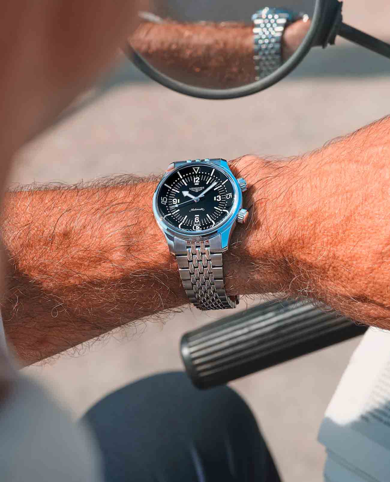 Швейцарские мужские механические часы Longines Legend Diver L3.764.4.50.7 – спортивный аксессуар в дайверском стиле. Циферблат отличается улучшенной читабельностью показателей благодаря крупной индикации времени, стрелками и метками с люминесцентной подсветкойЛюминесцентное покрытиеПозволяет считывать показания времени в темноте. Производители наносят на стрелки, часовые индексы, безель или поверхность циферблата светонакопительный состав, дающий холодное свечение. Super-LumiNova, антибликовому покрытиюАнтибликовое покрытиеСлой оксида металла в 0,13-0,3 микрон, благодаря которому стекло часов не бликует и не отражает свет. Антибликовое покрытие уменьшает отражение света в 10 раз, обеспечивая отличную читаемость показателей циферблата. сапфирового стеклаСапфировое стеклоПрочный и надёжный материал из кристалла сапфира синтетического происхождения, характеризующийся особой твёрдостью и устойчивостью к царапинам и повреждениям., устойчивого к мелким механическим повреждениям. Швейцарский автоматический механизм L888 имеет запас хода на 72 часа. Водозащита 300 метров, позволит плавать, нырять и заниматься другими водными видами спорта. Стальной браслет на раскладной застёжкеРаскладная застёжкаТакой тип застёжки используется только на браслетах из металла. Она никогда не раскрывается полностью, происходит разделение на 2 и более частей. Раскладывающая застёжка снизит вероятность потери часов к минимуму..