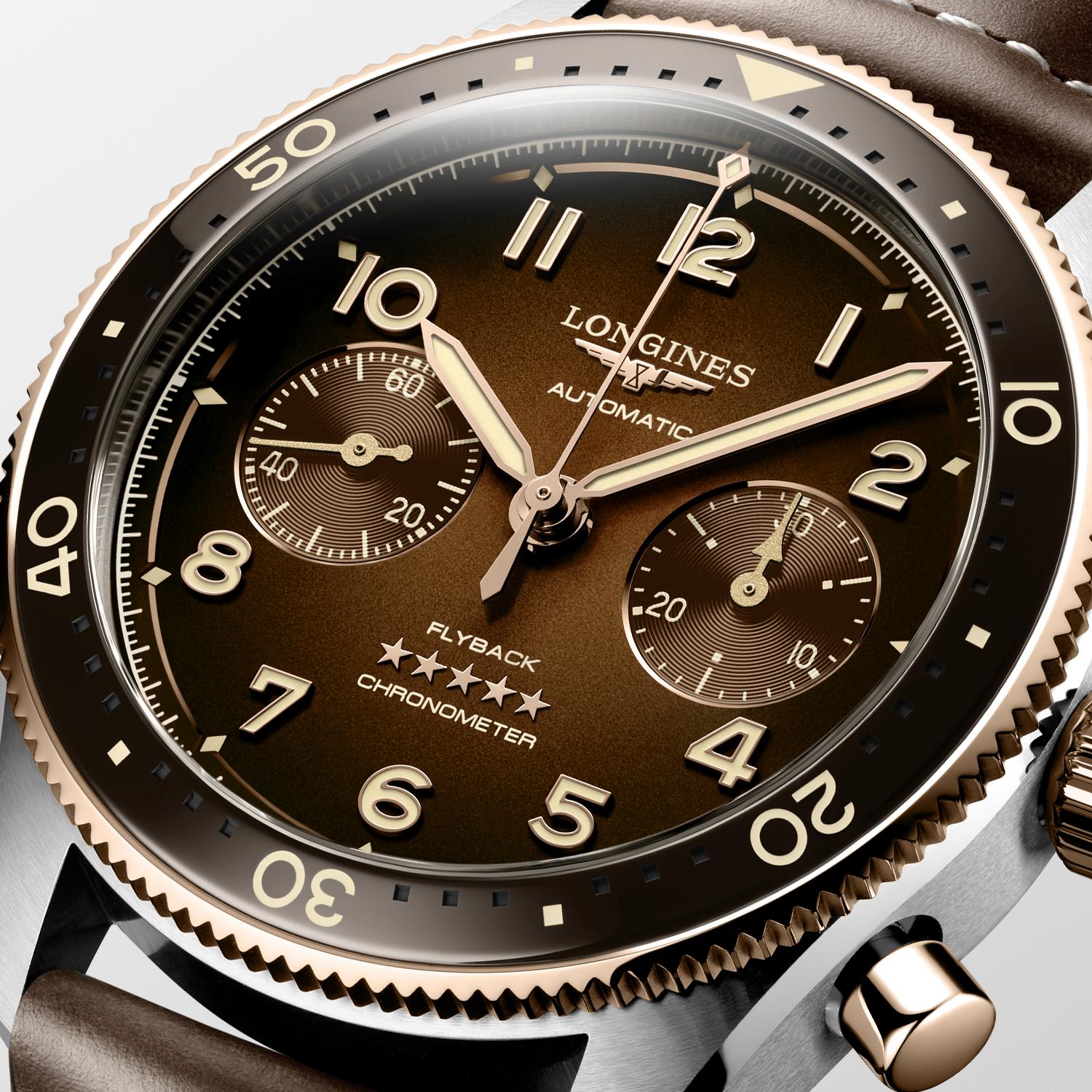 Коллекция Longines Spirit пополнилась часами с функцией Flyback. Эти часы приводятся в движение новым эксклюзивным калибром Longines, устойчивым к магнетизму и оснащенным кремниевой пружиной баланса. Спортивный хронографХронографФункция позволяет измерять отрезки времени с особой точностью: часы, минуты, секунды. Верным признаком хронографа является наличие на циферблате 3 дополнительных окошек-счётчиков. выпущен в честь известных авиаторов, которые раньше тестировали часы Longines. Модель оснащена швейцарским автоматическим механизмом, чрезвычайно точный механизм с запасом хода 68 часов сертифицирован COSCСертификат COSCОфициальный сертификат, подтверждающий то, что часы ходят с особо высокой точностью. Для получения документа часы подвергаются тестовым испытаниям, разработанным швейцарским институтом тестирования хронометров COSC. Допустимая норма для механических часов -4/+6 секунд в день, для кварцевых моделей +/- 0,07 секунд в день.. Дополнительные особенности: сапфировое стеклоСапфировое стеклоПрочный и надёжный материал из кристалла сапфира синтетического происхождения, характеризующийся особой твёрдостью и устойчивостью к царапинам и повреждениям. с двухсторонним антибликовым покрытиемАнтибликовое покрытиеСлой оксида металла в 0,13-0,3 микрон, благодаря которому стекло часов не бликует и не отражает свет. Антибликовое покрытие уменьшает отражение света в 10 раз, обеспечивая отличную читаемость показателей циферблата., люминесцентная подсветкаЛюминесцентное покрытиеПозволяет считывать показания времени в темноте. Производители наносят на стрелки, часовые индексы, безель или поверхность циферблата светонакопительный состав, дающий холодное свечение..На прозрачной задней крышке видны все детали калибра, в том числе персонализированный вес с выгравированным изображением земного шара, символизирующего коллекцию Longines Spirit, и название Longines Flyback. Эта новая модель также отличается утонченной эстетикой и особенно тщательной отделкой, которая включает в себя сатинированные, матовые, полированные и гравированные детали. Он оснащен двунаправленным безелем, дополненным керамической вставкой с люминесцентными метками и циферблатом в виде солнечных лучей.