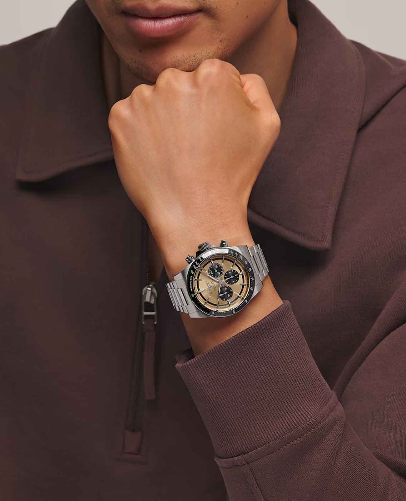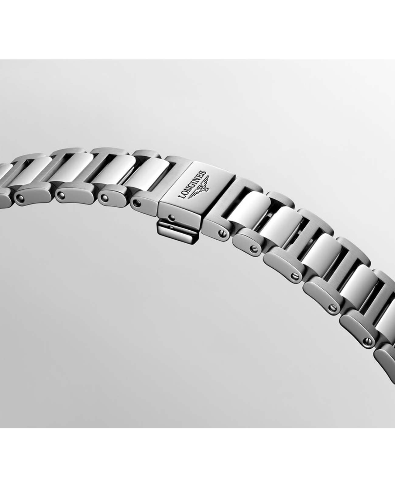 Мужские швейцарские механические часы- хронографХронографФункция позволяет измерять отрезки времени с особой точностью: часы, минуты, секунды. Верным признаком хронографа является наличие на циферблате 3 дополнительных окошек-счётчиков. Longines Conquest L3.835.4.32.6. Сапфировое стеклоСапфировое стеклоПрочный и надёжный материал из кристалла сапфира синтетического происхождения, характеризующийся особой твёрдостью и устойчивостью к царапинам и повреждениям. с многослойным антибликовым покрытием с обеих сторон, устойчивое к появлению царапин, обладающее высокой прозрачностью. Корпус часов изготовлен из стали. Неподвижный безельБезельВнешний ободок, закрепляющий стекло. В спортивных часах так называется поворотное кольцо с делениями на циферблате, выполняет роль таймера – замеряет отрезки времени на шкале. Неподвижный безель – элемент декора. Однонаправленно вращающийся безель на дайверских часах позволяет фиксировать моменты погружения и выныривания на поверхность. из стали и керамики, защищенный от царапин, никогда не изнашивается и не выцветает. Шкала тахиметраТахиметрРазмеченная шкала, располагается на ободке или безеле часов. Тахиметр позволяет рассчитать скорость на определённом участке пути, расстояние измеряется в километрах или милях.. На циферблате расположены три дополнительных циферблата. Стрелки и метки с люминесцентным покрытиемЛюминесцентное покрытиеПозволяет считывать показания времени в темноте. Производители наносят на стрелки, часовые индексы, безель или поверхность циферблата светонакопительный состав, дающий холодное свечение.. Класс водозащиты: 100 метров, позволит плавать, нырять и заниматься другими водными видами спорта. Стальной браслет на раскладной застёжкеРаскладная застёжкаТакой тип застёжки используется только на браслетах из металла. Она никогда не раскрывается полностью, происходит разделение на 2 и более частей. Раскладывающая застёжка снизит вероятность потери часов к минимуму..