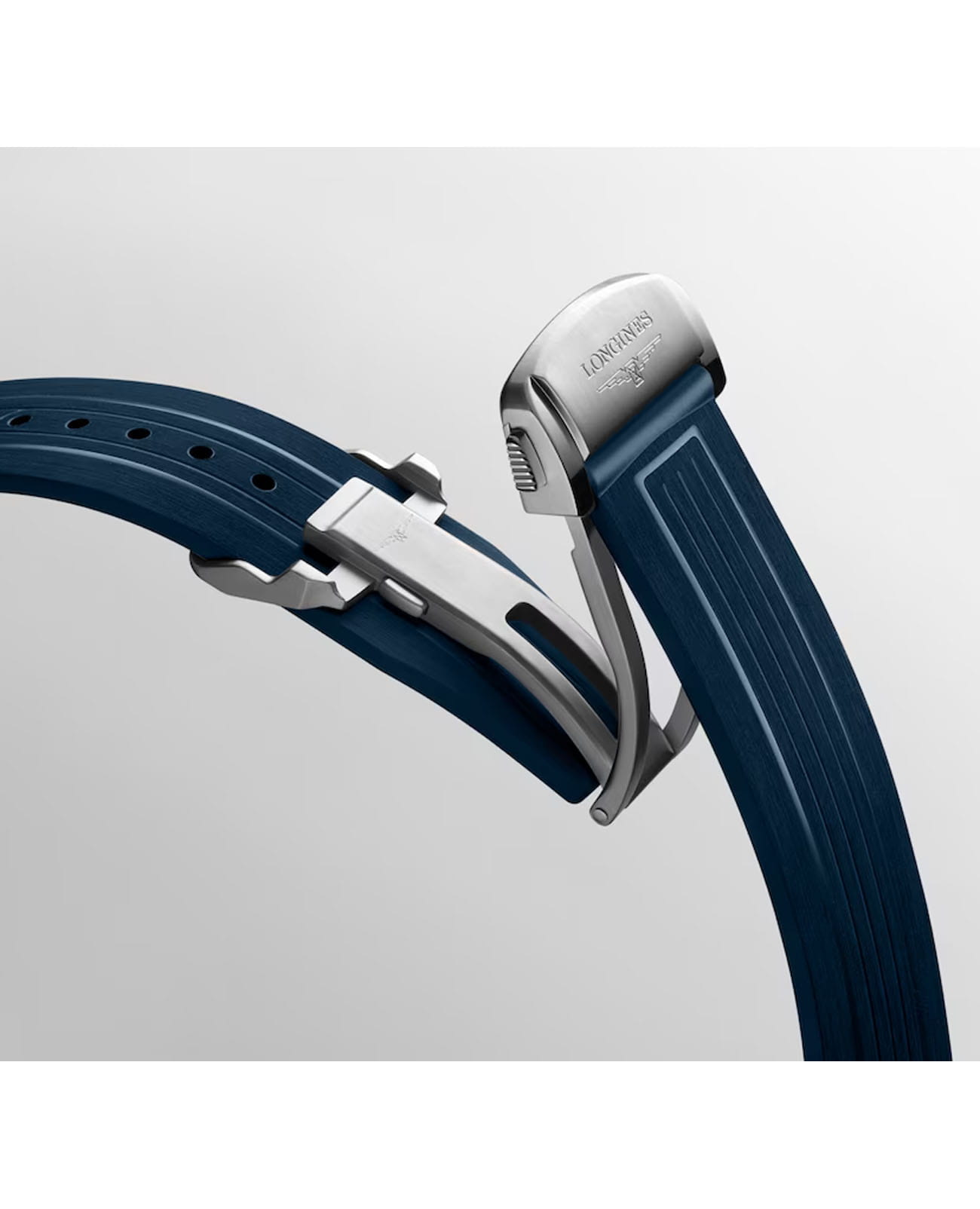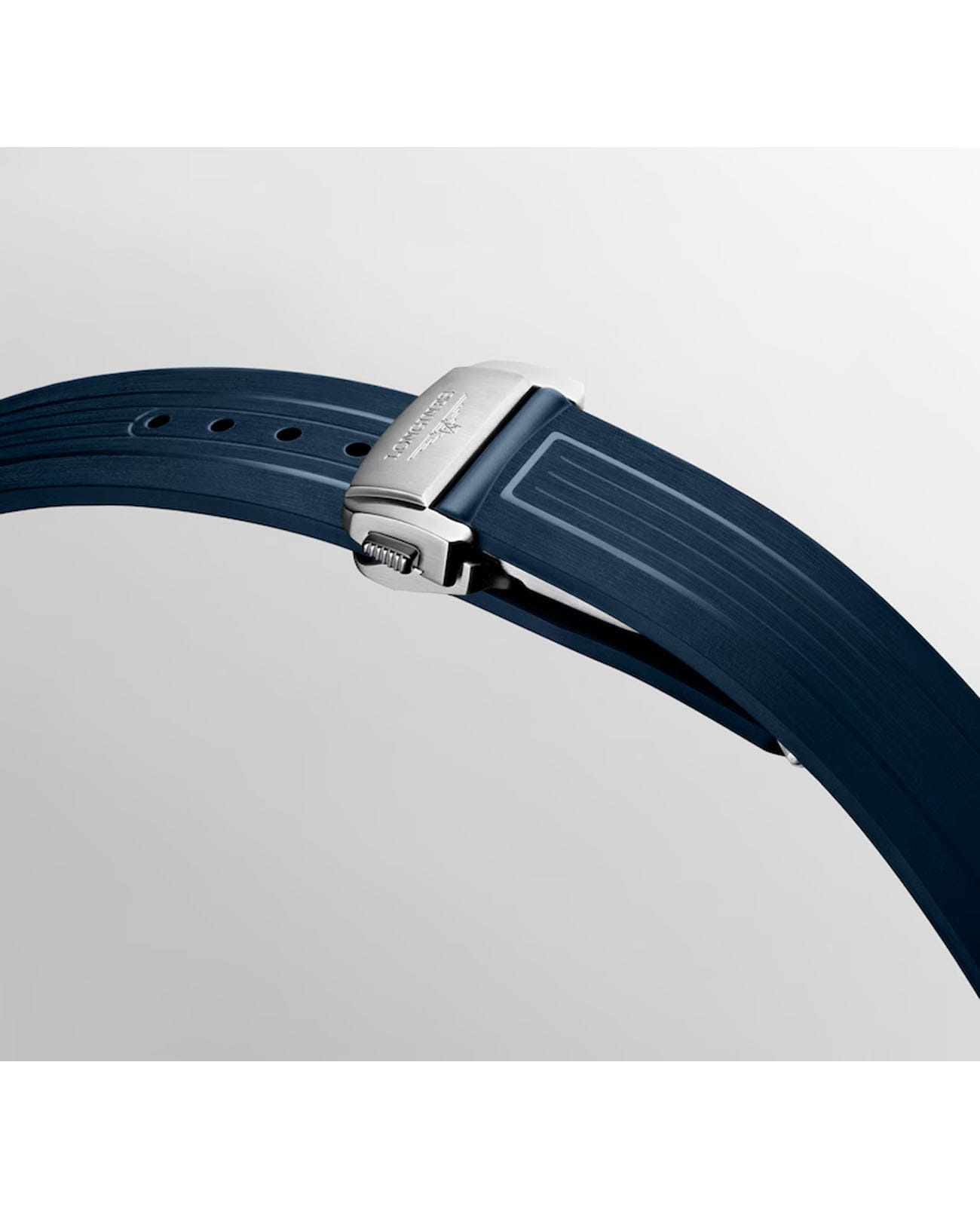Мужские швейцарские механические часы Longines Conquest L3.890.4.96.9. Сапфировое стеклоСапфировое стеклоПрочный и надёжный материал из кристалла сапфира синтетического происхождения, характеризующийся особой твёрдостью и устойчивостью к царапинам и повреждениям. с многослойным антибликовым покрытием с обеих сторон, устойчивое к появлению царапин, обладающее высокой прозрачностью. Корпус часов изготовлен из стали. Врачающийся безельБезельВнешний ободок, закрепляющий стекло. В спортивных часах так называется поворотное кольцо с делениями на циферблате, выполняет роль таймера – замеряет отрезки времени на шкале. Неподвижный безель – элемент декора. Однонаправленно вращающийся безель на дайверских часах позволяет фиксировать моменты погружения и выныривания на поверхность. из стали и керамики, защищенный от царапин, никогда не изнашивается и не выцветает. Стрелки и метки с люминесцентным покрытиемЛюминесцентное покрытиеПозволяет считывать показания времени в темноте. Производители наносят на стрелки, часовые индексы, безель или поверхность циферблата светонакопительный состав, дающий холодное свечение.. Окошко даты в положении 3 часа. Класс водозащиты: 300 метров, позволит плавать, нырять и заниматься другими водными видами спорта. Каучуковый ремешок на раскладной застёжкеРаскладная застёжкаТакой тип застёжки используется только на браслетах из металла. Она никогда не раскрывается полностью, происходит разделение на 2 и более частей. Раскладывающая застёжка снизит вероятность потери часов к минимуму..