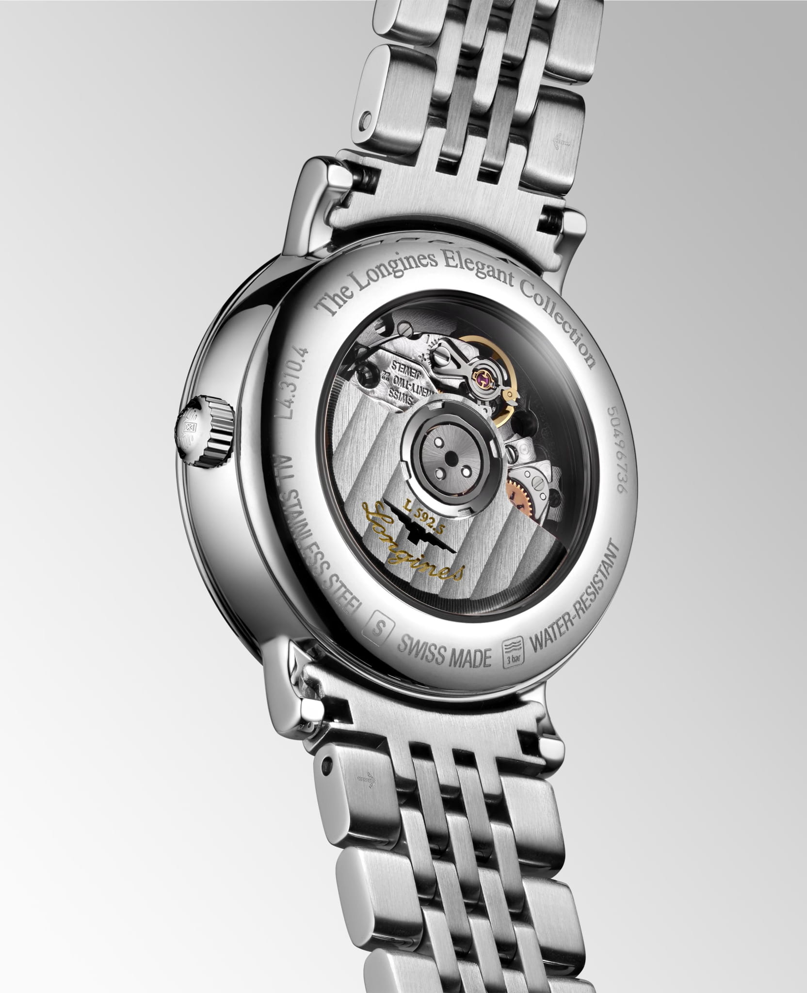 Швейцарские механические часы с автоподзаводом Longines Elegant L4.310.4.11.6. Сапфировое стеклоСапфировое стеклоПрочный и надёжный материал из кристалла сапфира синтетического происхождения, характеризующийся особой твёрдостью и устойчивостью к царапинам и повреждениям. с многослойным антибликовым покрытием с обеих сторон, устойчивое к появлению царапин, обладающее высокой прозрачностью. Корпус часов изготовлен из стали. Окошко даты находится в положении 3 часа. Класс водозащиты: 30 метров, позволит защитить корпус от случайных брызг или капель дождя. Стальной браслет на застёжке «бабочка» с кнопкамиЗастёжка "бабочка"Такой вид застёжки дополняется предохранителями, помогающими избежать случайного раскрытия браслета. Обладают изящным исполнением. .