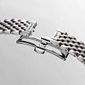 . Автоматический механизм L592 обеспечивает высокую точность и простоту использования. Водостойкость до 30 метров позволит плавать, нырять и заниматься другими водными видами спорта. Изысканный браслет выполнен из нержавеющей стали и частичным 18-каратным золотом18-каратное золотоОбозначение по каратной системе пробирования, оно показывает, сколько драгоценного металла содержится в изделии. 18 карат - в составе 75% чистого золота, соответствует 750 пробе.