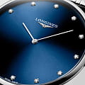 Женские швейцарские часы Longines La Grande Classique l4.866.4.97.6, кварцевый механизм с высокой точностью. Сапфировое стеклоСапфировое стеклоПрочный и надёжный материал из кристалла сапфира синтетического происхождения, характеризующийся особой твёрдостью и устойчивостью к царапинам и повреждениям. устойчивое к появлению царапин, обладающее высокой прозрачностью. Корпус часов изготовлен из стали. Циферблат с 12 бриллиантами группы Top Wesselton VS-SI общим весом 0.081 карата. Класс водозащиты: 30 метров, позволит защитить корпус от случайных брызг или капель дождя. Стальной браслет на застёжке-бабочке с кнопкамиЗастёжка "бабочка"Такой вид застёжки дополняется предохранителями, помогающими избежать случайного раскрытия браслета. Обладают изящным исполнением. .
