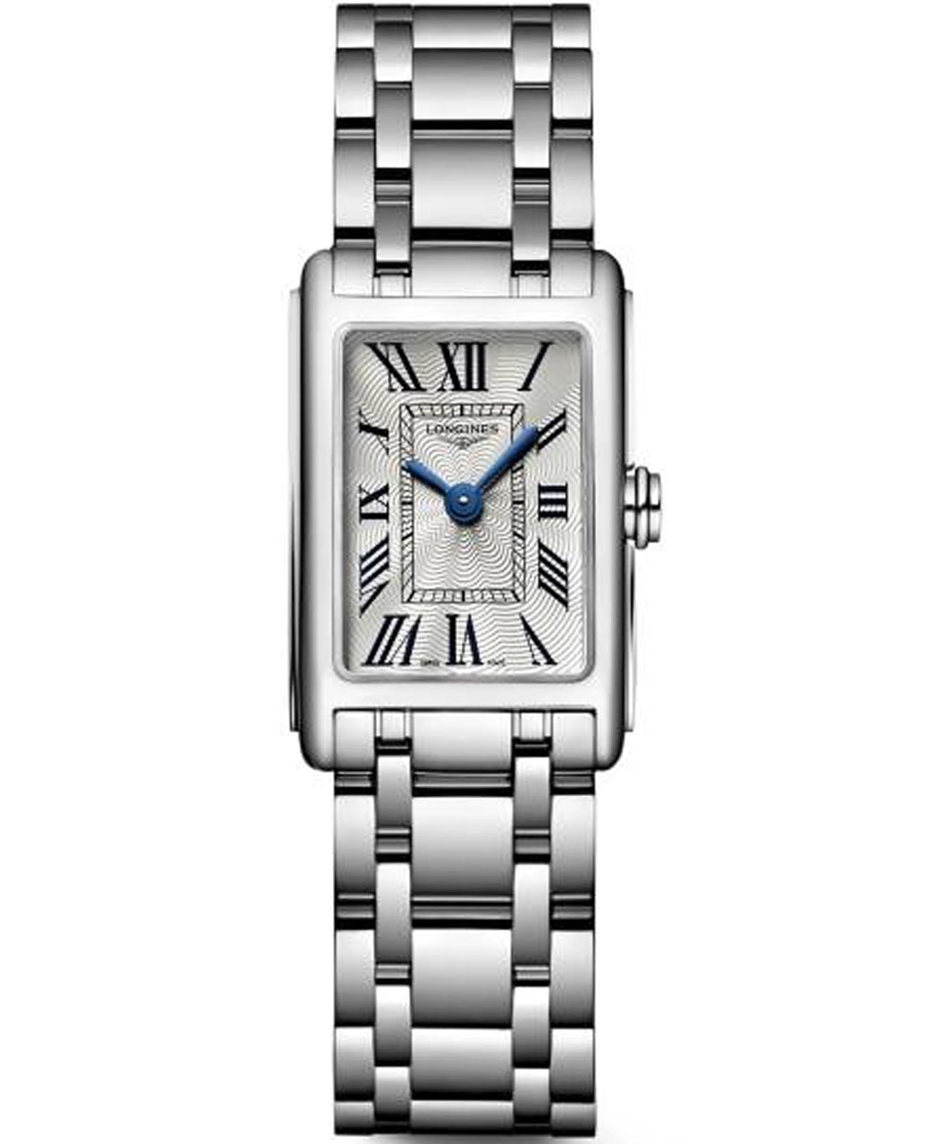 Женские швейцарские часы Longines DolceVita L5.258.4.71.6, кварцевый механизм с высокой точностью. Сапфировое стеклоСапфировое стеклоПрочный и надёжный материал из кристалла сапфира синтетического происхождения, характеризующийся особой твёрдостью и устойчивостью к царапинам и повреждениям. устойчивое к появлению царапин, обладающее высокой прозрачностью. Корпус изготовлен из нержавеющей стали. Класс водозащиты: 30 метров, позволит защитить корпус от случайных брызг или капель дождя. Браслет из нержавеющей стали на застёжке-бабочке с кнопкамиЗастёжка "бабочка"Такой вид застёжки дополняется предохранителями, помогающими избежать случайного раскрытия браслета. Обладают изящным исполнением. .