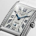 Женские швейцарские часы Longines DolceVita L5.512.0.71.2 , кварцевый механизм с высокой точностью. Сапфировое стеклоСапфировое стеклоПрочный и надёжный материал из кристалла сапфира синтетического происхождения, характеризующийся особой твёрдостью и устойчивостью к царапинам и повреждениям. устойчивое к появлению царапин, обладающее высокой прозрачностью. Корпус часов изготовлен из нержавеющей стали с 46 бриллиантами группы Top Wesselton IF-VVS общим весом 0.552 карата. Метки в виде римских цифр. Малая секундная стрелка в положении 6 часов. Класс водозащиты: 30 метров, позволит защитить корпус от случайных брызг или капель дождя. Ремешок из кожи аллигатора на стандартной застежке.