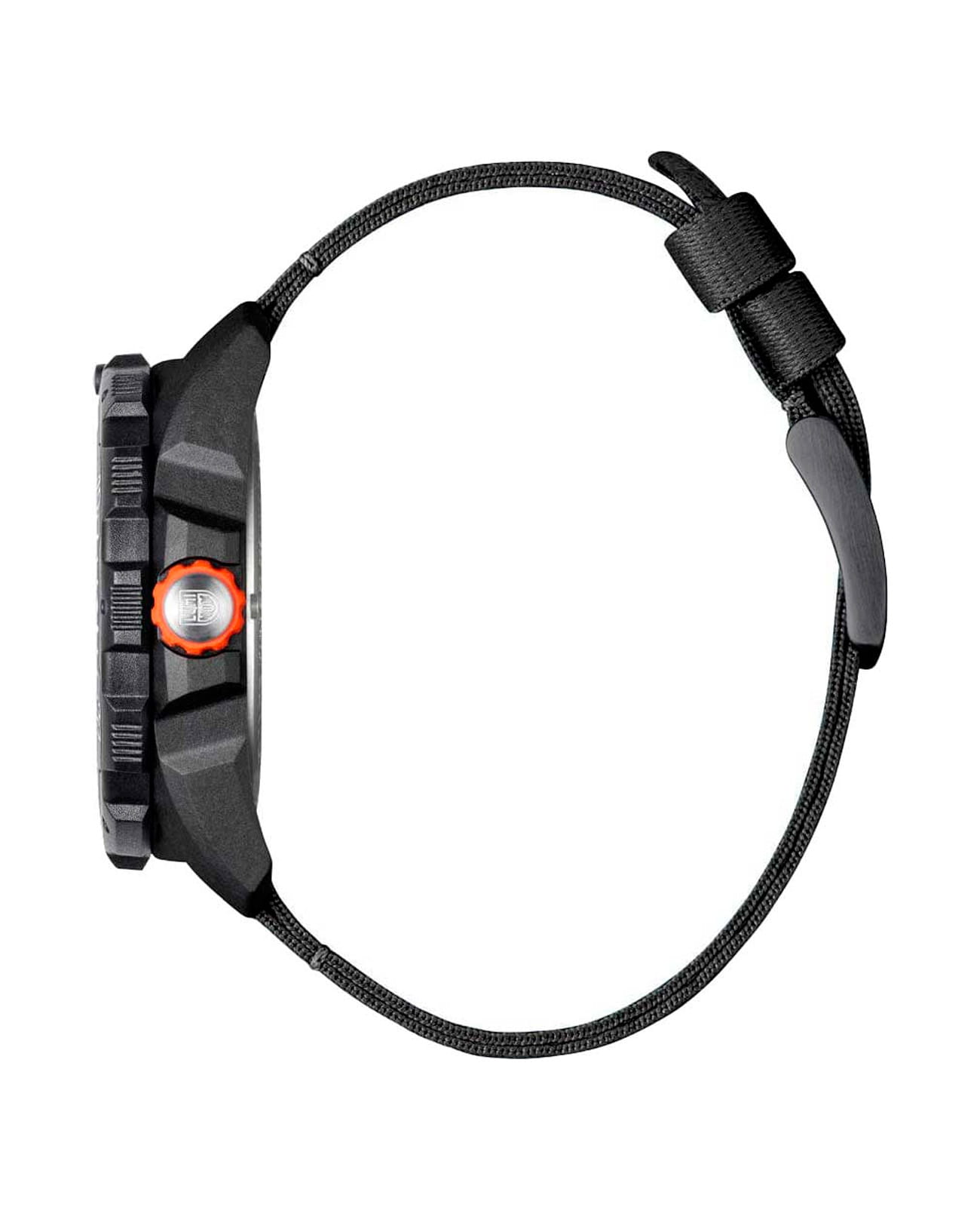 Мужские наручные часы Luminox Bear Grylls Survival ECO NO PLANET B XB.3722.ECO сочетают в себе экологичность и функциональность для любителей активного образа жизни. Модель обладает круглым корпусом диаметром 43 мм, изготовленным из переработанного океанского пластика, что обеспечивает высокую устойчивость к внешним воздействиям при минимальном воздействии на окружающую среду. Браслет выполнен из нейлона черного цвета на стандартной застежке, гарантирующей комфортное ношение и безопасность. Циферблат черного цвета оснащен индикацией времени и даты, а также люминесцентными элементами для видимости в темноте. Для защиты используется минеральное стеклоМинеральное стеклоМинеральное стекло представляет собой искусственно выращенный минерал кварца. Такое стекло отличается особой устойчивостью к повреждениям и царапинам. Уступает по некоторым качествам сапфировому стеклу., обеспечивающее прочную защиту от царапин. Часы комплектуются вращающимся безелемБезельВнешний ободок, закрепляющий стекло. В спортивных часах так называется поворотное кольцо с делениями на циферблате, выполняет роль таймера – замеряет отрезки времени на шкале. Неподвижный безель – элемент декора. Однонаправленно вращающийся безель на дайверских часах позволяет фиксировать моменты погружения и выныривания на поверхность. с односторонним вращением, полезным для подсчета времени погружения или других временных интервалов.Часы работают на кварцевом механизме Ronda 515, который обеспечивает точное время без необходимости подзаводки, при этом срок службы батарейки составляет около 3-4 лет. Водонепроницаемость часов достигает 200 метров (20 атмосфер), что позволяет использовать их при плавании, дайвинге и других водных видах спорта. Luminox XB.3722.ECO — это не просто аксессуар, а инструмент для выживания, созданный в сотрудничестве с Bear Grylls, который подчеркивает важность защиты нашей планеты через использование материалов из переработанного пластика.