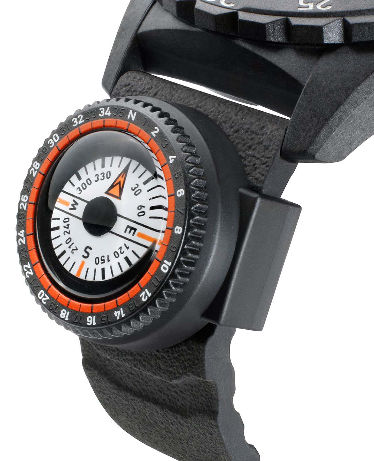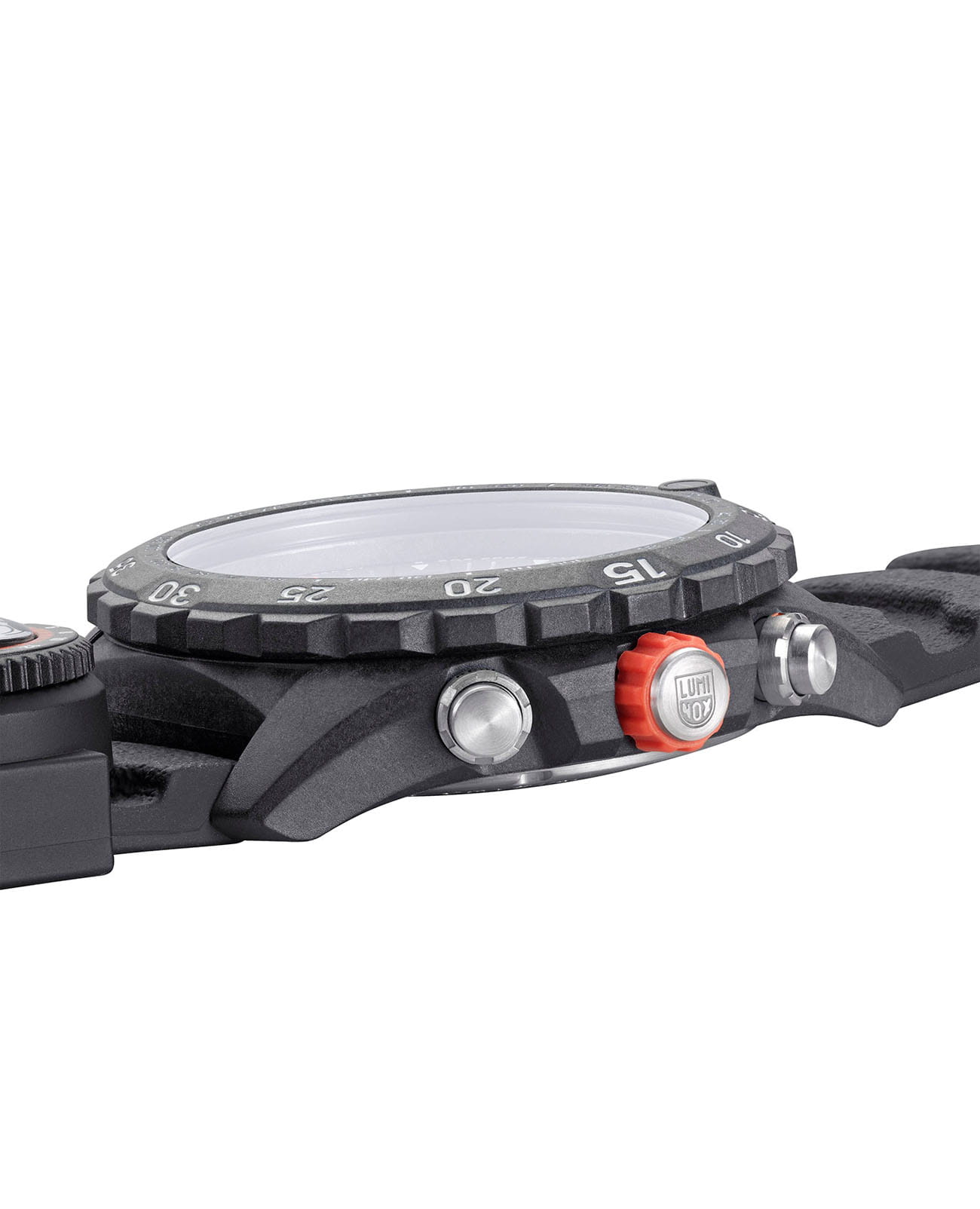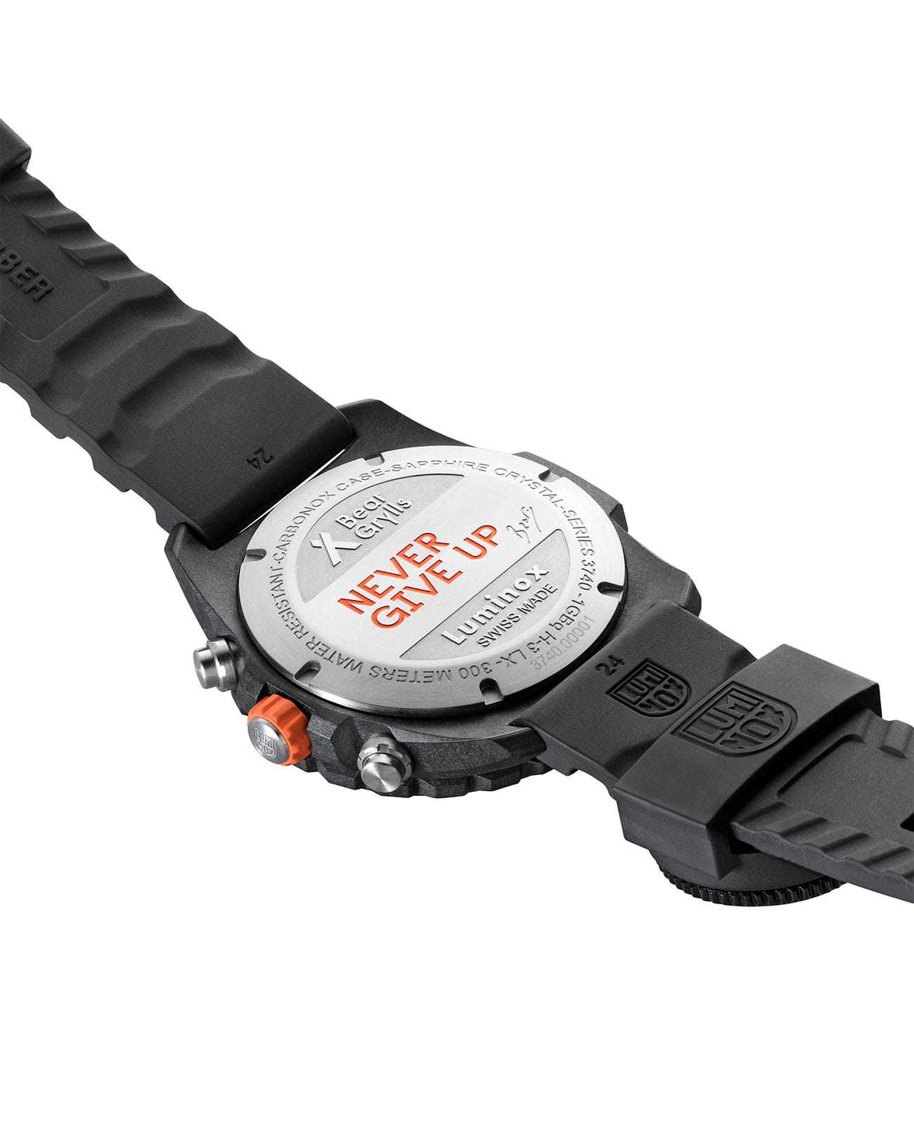 Мужские наручные часы-хронографХронографФункция позволяет измерять отрезки времени с особой точностью: часы, минуты, секунды. Верным признаком хронографа является наличие на циферблате 3 дополнительных окошек-счётчиков. Luminox Bear Grylls Survival Series XB.3745 разработаны для любителей активного образа жизни и экстремальных условий. Модель обладает круглым корпусом диаметром 45 мм, изготовленным из черного пластика, что обеспечивает исключительную прочность и легкость конструкции. Браслет выполнен из полиуретана черного цвета с текстурированной поверхностью, оснащен классической застежкой, гарантирующей комфортное ношение и безопасность. Циферблат украшен крупными индексами и стрелками с люминесцентным покрытиемЛюминесцентное покрытиеПозволяет считывать показания времени в темноте. Производители наносят на стрелки, часовые индексы, безель или поверхность циферблата светонакопительный состав, дающий холодное свечение., обеспечивающим отличную видимость в условиях недостаточной освещенности. Для защиты используется сапфировое стеклоСапфировое стеклоПрочный и надёжный материал из кристалла сапфира синтетического происхождения, характеризующийся особой твёрдостью и устойчивостью к царапинам и повреждениям. с антибликовым покрытиемАнтибликовое покрытиеСлой оксида металла в 0,13-0,3 микрон, благодаря которому стекло часов не бликует и не отражает свет. Антибликовое покрытие уменьшает отражение света в 10 раз, обеспечивая отличную читаемость показателей циферблата., которое не только защищает от царапин, но и обеспечивает четкое чтение времени при ярком свете. Часы работают на кварцевом механизме, который гарантирует точное время без необходимости подзаводки и имеет длительный срок службы батареи — около 3-4 лет. Модель также оснащена односторонним безелемБезельВнешний ободок, закрепляющий стекло. В спортивных часах так называется поворотное кольцо с делениями на циферблате, выполняет роль таймера – замеряет отрезки времени на шкале. Неподвижный безель – элемент декора. Однонаправленно вращающийся безель на дайверских часах позволяет фиксировать моменты погружения и выныривания на поверхность. с делениями для расчета времени погружения или выполнения других задач, а также функцией второго часового поясаВторой часовой поясФункция, позволяющая отображать время двух часовых поясов одновременно., что делает ее удобной для путешествий и международных перелетов. Водонепроницаемость часов достигает 300 метров (30 атмосфер), что позволяет использовать их во время плавания, дайвинга и других водных видов спорта. Luminox XB.3745 создан в сотрудничестве с Bear Grylls, сочетая в себе функциональность, надежность и стиль, необходимые для выживания в самых сложных условиях.
