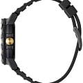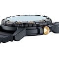 Мужские наручные часы Luminox XS.0325.GP из коллекции Leatherback SEA Turtle Giant сочетают в себе спортивный дизайн и надежность швейцарского качества. Модель обладает круглым корпусом диаметром 44 мм, изготовленным из карбонаКарбонОт «carbon», «carbone» - углерод, углепластик - полимерный композиционный материал из переплетённых под определенным углом между собой нитей углеродного волокна, применяется для изготовления лёгких, но прочных деталей. В часах часто используют для украшения циферблатов и ремешков. Так же карбон используется в изготовлении корпусов. Такие корпуса обладают антикоррозионным свойством, не поддаются электромагнитному излучению, обладают повышенной прочностью и противоударностью. (CARBONOX™), что обеспечивает высокую устойчивость к внешним воздействиям при сохранении легкости. Циферблат золотистого цвета украшен контрастными черными метками и стрелками с , гарантирующим постоянную видимость времени даже в условиях низкой освещенности. Часы оснащены кварцевым механизмом швейцарского производства, обеспечивающим точность хода ±15 секунд в месяц. Защиту циферблата обеспечивает прочное минеральное стеклоМинеральное стеклоМинеральное стекло представляет собой искусственно выращенный минерал кварца. Такое стекло отличается особой устойчивостью к повреждениям и царапинам. Уступает по некоторым качествам сапфировому стеклу., устойчивое к царапинам и механическим повреждениям. Водонепроницаемость модели достигает 10 атмосфер (100 метров), что делает их подходящими для плавания и активного отдыха на воде. Модель также оснащена безелемБезельВнешний ободок, закрепляющий стекло. В спортивных часах так называется поворотное кольцо с делениями на циферблате, выполняет роль таймера – замеряет отрезки времени на шкале. Неподвижный безель – элемент декора. Однонаправленно вращающийся безель на дайверских часах позволяет фиксировать моменты погружения и выныривания на поверхность. с односторонним вращением, что добавляет функциональности при использовании в водных условиях. Ремешок выполнен из полиуретана (PU) с нержавеющей стальной застежкой, что обеспечивает комфортное ношение в течение дня. Дополнительно часы имеют окно даты в положении «3 часа», что делает их практичными для повседневного использования.