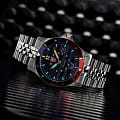 Часы Luminox VOLITION AMERICA Minuteman XS.0914.VOL — истинное воплощение швейцарского качества и современного стиля. Эти мужские часы, оснащённые кварцевым механизмом, предлагают безупречную точность и надёжность, благодаря использованию калибра RONDA 515. Корпус выполнен из высококачественной стали 316L, что придаёт дополнительную прочность и устойчивость к износу. Синий циферблат защищён сапфировым стекломСапфировое стеклоПрочный и надёжный материал из кристалла сапфира синтетического происхождения, характеризующийся особой твёрдостью и устойчивостью к царапинам и повреждениям. с антибликовым покрытиемАнтибликовое покрытиеСлой оксида металла в 0,13-0,3 микрон, благодаря которому стекло часов не бликует и не отражает свет. Антибликовое покрытие уменьшает отражение света в 10 раз, обеспечивая отличную читаемость показателей циферблата., что позволяет с лёгкостью считывать показания даже при ярком освещении. Часы обладают функцией отображения даты и дня недели, расположенной в удобном окошке в позиции 3 часа. Фиксированный безельБезельВнешний ободок, закрепляющий стекло. В спортивных часах так называется поворотное кольцо с делениями на циферблате, выполняет роль таймера – замеряет отрезки времени на шкале. Неподвижный безель – элемент декора. Однонаправленно вращающийся безель на дайверских часах позволяет фиксировать моменты погружения и выныривания на поверхность. из нержавеющей стали 316L с алюминиевой кольцевой вставкой с PVD-покрытиемPVDУльтратонкое покрытие наносится в технике вакуумного напыления, сочетает в себе нитрид титана особой прочности со слоем золота или оксида хрома. Несёт в себе декоративную или защитную функцию. синего и красного цвета обеспечивает дополнительную функциональность и стильный вид. Благодаря технологии LLTLLTLLT — это автономный механизм подсветки, основанный на использовании микроскопических газонаполненных элементов. Специальные герметичные капсулы из боросиликатного стекла, интегрированные в циферблат, генерируют свечение без необходимости подключения к внешним источникам энергии. Для их работы не требуется ни дополнительный свет, ни механическое воздействие (например, нажатие кнопки). Свечение возникает благодаря химическому процессу: реакция между тритием, заключенным в капсулах, и люминофорным покрытием создает стабильное автономное освещение. Технология обеспечивает энергетическую независимость и долговечность подсветки.-подсветки, эти часы гарантируют превосходную видимость в темноте на протяжении 25 лет. Стальной браслет, изготовленный из того же материала, что и корпус, оснащён раскладной застёжкойРаскладная застёжкаТакой тип застёжки используется только на браслетах из металла. Она никогда не раскрывается полностью, происходит разделение на 2 и более частей. Раскладывающая застёжка снизит вероятность потери часов к минимуму. с системой блокировки, обеспечивая надёжную фиксацию на запястье. Водозащита уровня 100WR позволяет использовать часы даже в условиях повышенной влажности. Габаритные размеры составляют 42 мм в диаметре, 13 мм в толщину, с шириной браслета 24 мм и весом 160 г, что делает их идеальным выбором для тех, кто ценит стиль и функциональность в одном аксессуаре.