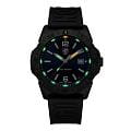 Luminox XS.3123.B — мужская модель серии Pacific Diver, сочетающая надёжность дайверских часов и современный стиль. Корпус диаметром 44 мм выполнен из нержавеющей стали с чёрным PVDPVDУльтратонкое покрытие наносится в технике вакуумного напыления, сочетает в себе нитрид титана особой прочности со слоем золота или оксида хрома. Несёт в себе декоративную или защитную функцию.-покрытием, а односторонний вращающийся безельБезельВнешний ободок, закрепляющий стекло. В спортивных часах так называется поворотное кольцо с делениями на циферблате, выполняет роль таймера – замеряет отрезки времени на шкале. Неподвижный безель – элемент декора. Однонаправленно вращающийся безель на дайверских часах позволяет фиксировать моменты погружения и выныривания на поверхность. из углеродного композита отличается прочностью и лёгкостью. Защитную функцию выполняет сапфировое стеклоСапфировое стеклоПрочный и надёжный материал из кристалла сапфира синтетического происхождения, характеризующийся особой твёрдостью и устойчивостью к царапинам и повреждениям. с антибликовым покрытиемАнтибликовое покрытиеСлой оксида металла в 0,13-0,3 микрон, благодаря которому стекло часов не бликует и не отражает свет. Антибликовое покрытие уменьшает отражение света в 10 раз, обеспечивая отличную читаемость показателей циферблата., обеспечивающим чёткую читаемость в любых условиях. Механизм — швейцарский кварцевый, с индикацией часов, минут, секунд и даты. Водозащита 200 м (20 бар) соответствует профессиональным стандартам для дайвинга. Метки и стрелки покрыты люминесцентным покрытиемЛюминесцентное покрытиеПозволяет считывать показания времени в темноте. Производители наносят на стрелки, часовые индексы, безель или поверхность циферблата светонакопительный состав, дающий холодное свечение. и дополнены системой Luminox Light Technology, которая обеспечивает постоянную подсветку до 25 лет без подзарядки. Модель укомплектована каучуковым ремешком с классической застёжкой, который подчёркивает спортивный характер и удобство при активном использовании.
