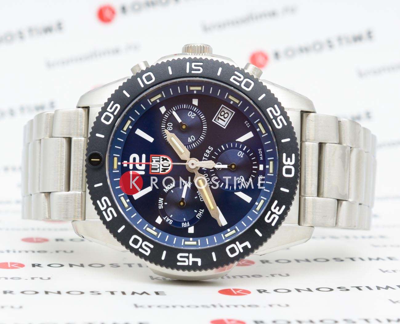 Мужские наручные часы-хронографХронографФункция позволяет измерять отрезки времени с особой точностью: часы, минуты, секунды. Верным признаком хронографа является наличие на циферблате 3 дополнительных окошек-счётчиков. Luminox XS.3144 из коллекции Pacific Diver сочетают в себе спортивный дизайн и надежность швейцарского качества . Модель обладает круглым корпусом диаметром 44 мм, изготовленным из нержавеющей стали с PVD-покрытиемPVDУльтратонкое покрытие наносится в технике вакуумного напыления, сочетает в себе нитрид титана особой прочности со слоем золота или оксида хрома. Несёт в себе декоративную или защитную функцию., что обеспечивает высокую устойчивость к внешним воздействиям и долговечность . Циферблат черного цвета украшен контрастными метками и стрелками с люминесцентным покрытиемЛюминесцентное покрытиеПозволяет считывать показания времени в темноте. Производители наносят на стрелки, часовые индексы, безель или поверхность циферблата светонакопительный состав, дающий холодное свечение., гарантирующим постоянную видимость времени даже в условиях низкой освещенности благодаря системе LLTLLTLLT — это автономный механизм подсветки, основанный на использовании микроскопических газонаполненных элементов. Специальные герметичные капсулы из боросиликатного стекла, интегрированные в циферблат, генерируют свечение без необходимости подключения к внешним источникам энергии. Для их работы не требуется ни дополнительный свет, ни механическое воздействие (например, нажатие кнопки). Свечение возникает благодаря химическому процессу: реакция между тритием, заключенным в капсулах, и люминофорным покрытием создает стабильное автономное освещение. Технология обеспечивает энергетическую независимость и долговечность подсветки. (микрогазовые огни) . Часы оснащены кварцевым механизмом швейцарского производства Ronda 515, обеспечивающим точность хода ±15 секунд в месяц . Защиту циферблата обеспечивает прочное сапфировое стеклоСапфировое стеклоПрочный и надёжный материал из кристалла сапфира синтетического происхождения, характеризующийся особой твёрдостью и устойчивостью к царапинам и повреждениям. с антибликовым покрытиемАнтибликовое покрытиеСлой оксида металла в 0,13-0,3 микрон, благодаря которому стекло часов не бликует и не отражает свет. Антибликовое покрытие уменьшает отражение света в 10 раз, обеспечивая отличную читаемость показателей циферблата., устойчивое к царапинам и механическим повреждениям . Водонепроницаемость модели достигает 20 атмосфер (200 метров), что делает их подходящими для плавания и активного отдыха на воде, включая дайвинг . Модель также оснащена безелемБезельВнешний ободок, закрепляющий стекло. В спортивных часах так называется поворотное кольцо с делениями на циферблате, выполняет роль таймера – замеряет отрезки времени на шкале. Неподвижный безель – элемент декора. Однонаправленно вращающийся безель на дайверских часах позволяет фиксировать моменты погружения и выныривания на поверхность. с односторонним вращением, что добавляет функциональности при использовании в водных условиях . Стальной браслет на раскладной застёжкеРаскладная застёжкаТакой тип застёжки используется только на браслетах из металла. Она никогда не раскрывается полностью, происходит разделение на 2 и более частей.