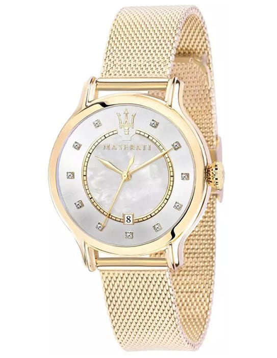 Женские американские часы Maserati Epoca R8853118512, кварцевый механизм с высокой точностью. Класс водозащиты: 100 метров, позволит плавать, нырять и заниматься другими водными видами спорта. Корпус часов изготовлен из стали, золотистого цвета.
