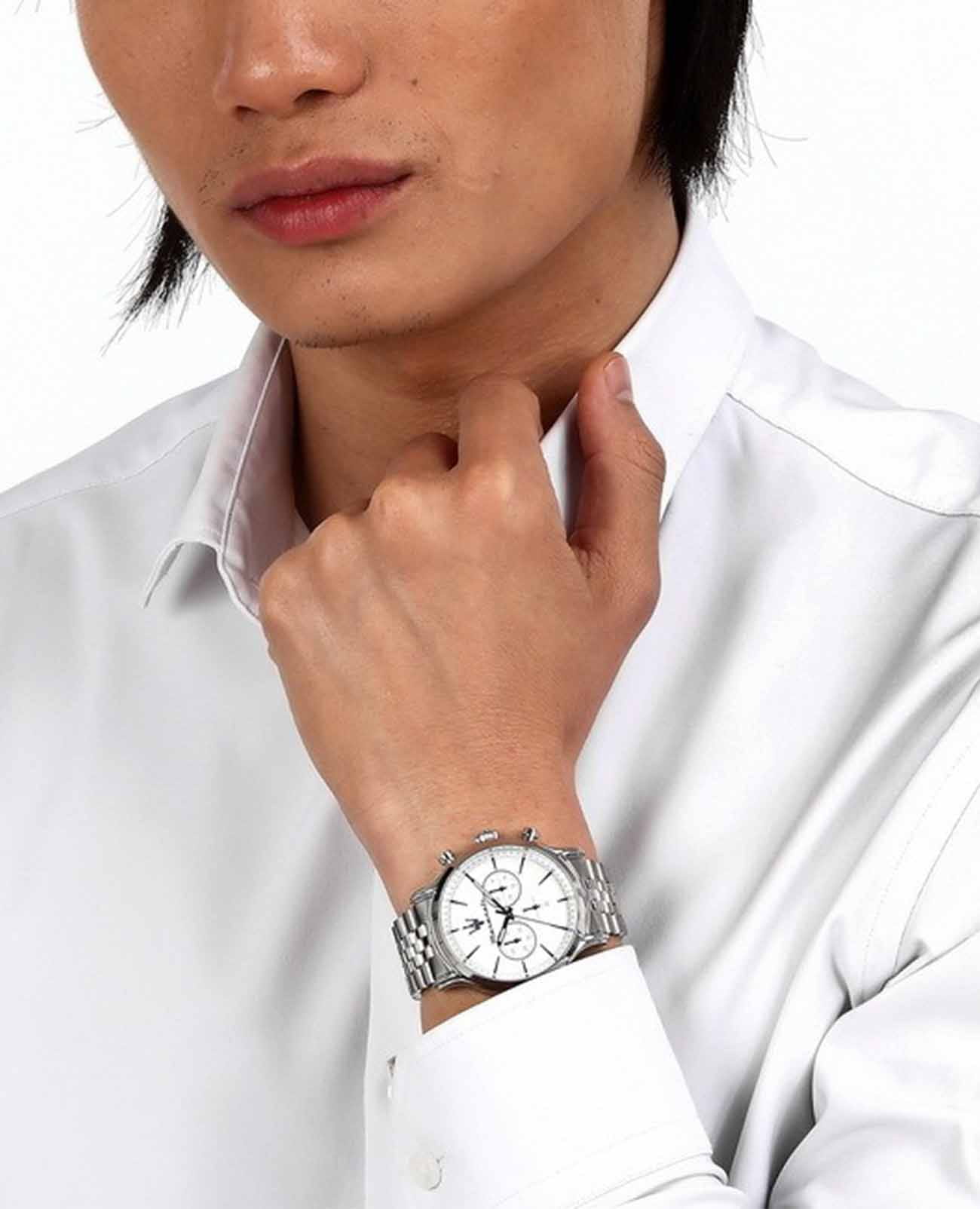 Наручные часы Maserati Epoca R8873618034 — воплощение элегантности и стиля от знаменитого итальянского бренда. Эти часы-хронографХронографФункция позволяет измерять отрезки времени с особой точностью: часы, минуты, секунды. Верным признаком хронографа является наличие на циферблате 3 дополнительных окошек-счётчиков. с секундомеромСекундомерСекундоме́р — прибор, способный измерять интервалы времени с точностью до долей секунды. созданы для тех, кто ценит качество и изысканный дизайн. Корпус из нержавеющей стали диаметром 42 мм обладает средней величиной, что делает их идеальным выбором для каждодневного ношения. Четкий белый циферблат с метками в виде рисок создает стильный контраст, подчеркивая утонченность и строгость дизайна. Люминесцентное покрытиеЛюминесцентное покрытиеПозволяет считывать показания времени в темноте. Производители наносят на стрелки, часовые индексы, безель или поверхность циферблата светонакопительный состав, дающий холодное свечение. на стрелках обеспечивает отличную видимость в темноте. Минеральное стеклоМинеральное стеклоМинеральное стекло представляет собой искусственно выращенный минерал кварца. Такое стекло отличается особой устойчивостью к повреждениям и царапинам. Уступает по некоторым качествам сапфировому стеклу. надежно защищает циферблат от царапин и повреждений. Водостойкость до 100 метров (10 АТМ) гарантирует, что они выдержат как случайные брызги, так и плавание. Стальной браслет с раскладной застёжкойРаскладная застёжкаТакой тип застёжки используется только на браслетах из металла. Она никогда не раскрывается полностью, происходит разделение на 2 и более частей. Раскладывающая застёжка снизит вероятность потери часов к минимуму. не только обеспечивает комфортное ношение, но и добавляет модели дополнительное очарование. Часы Maserati Epoca R8873618034 станут отличным дополнением как делового, так и повседневного образа, подчеркивая ваш индивидуальный стиль и внимание к деталям.