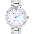 Женские кварцевые часы Mathey-Tissot Molly D1087AQI — это стильное сочетание элегантности и современного дизайна. Изящный корпус выполнен из нержавеющей стали серебристого цвета, диаметром 32 мм, что придаст образу элегантности и надежности. БезельБезельВнешний ободок, закрепляющий стекло. В спортивных часах так называется поворотное кольцо с делениями на циферблате, выполняет роль таймера – замеряет отрезки времени на шкале. Неподвижный безель – элемент декора. Однонаправленно вращающийся безель на дайверских часах позволяет фиксировать моменты погружения и выныривания на поверхность. и циферблат украшены кристаллами. Изысканный циферблат с метками в виде точек придает модели особый блеск. Циферблат защищен минеральным стекломМинеральное стеклоМинеральное стекло представляет собой искусственно выращенный минерал кварца. Такое стекло отличается особой устойчивостью к повреждениям и царапинам. Уступает по некоторым качествам сапфировому стеклу. с сапфировым покрытием, обеспечивает устойчивость к царапинам. Часы оснащены надежным кварцевым механизмом. Стальной браслет на застёжке-бабочке с кнопкамиЗастёжка "бабочка"Такой вид застёжки дополняется предохранителями, помогающими избежать случайного раскрытия браслета. Обладают изящным исполнением. , гарантирует комфортное и безопасное ношение. Класс водозащиты: 50 метров позволит защитить корпус от случайных брызг или капель дождя. Mathey-Tissot — отличный выбор для тех, кто ценит утонченность и качество.