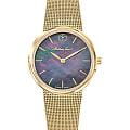 Женские кварцевые часы Mathey-Tissot Milly D403PYN — это стильное сочетание элегантности и современного дизайна. Изящный корпус выполнен из нержавеющей стали с PVD-покрытиемPVDУльтратонкое покрытие наносится в технике вакуумного напыления, сочетает в себе нитрид титана особой прочности со слоем золота или оксида хрома. Несёт в себе декоративную или защитную функцию. золотистого цвета, диаметром 30 мм, что придаст образу элегантности и надежности. Изысканный перламутровый циферблат с метками в виде штрихов придает модели особый блеск. Циферблат защищен минеральным стекломМинеральное стеклоМинеральное стекло представляет собой искусственно выращенный минерал кварца. Такое стекло отличается особой устойчивостью к повреждениям и царапинам. Уступает по некоторым качествам сапфировому стеклу. с сапфировым покрытием, обеспечивает устойчивость к царапинам. Часы оснащены надежным кварцевым механизмом. Стальной браслет с PVD-покрытиемPVDУльтратонкое покрытие наносится в технике вакуумного напыления, сочетает в себе нитрид титана особой прочности со слоем золота или оксида хрома. Несёт в себе декоративную или защитную функцию. миланского плетения на раскладном замкеРаскладная застёжкаТакой тип застёжки используется только на браслетах из металла. Она никогда не раскрывается полностью, происходит разделение на 2 и более частей. Раскладывающая застёжка снизит вероятность потери часов к минимуму., гарантирует комфортное и безопасное ношение. Класс водозащиты: 30 метров позволит защитить корпус от случайных брызг или капель дождя. Mathey-Tissot  — отличный выбор для тех, кто ценит утонченность и качество.