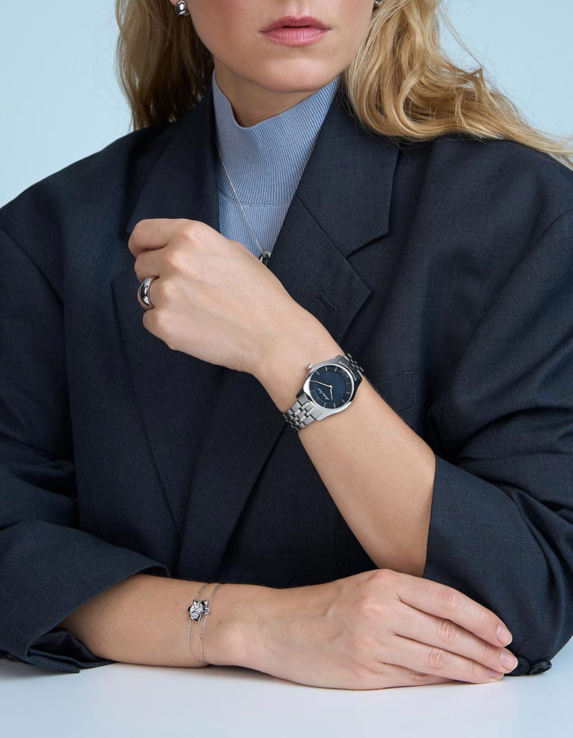 Женские кварцевые часы Mathey-Tissot Tacy D949AN — это стильное сочетание элегантности и современного дизайна. Изящный корпус выполнен из стали 316L и прекрасно впишется в ваш исключительный стиль. Изысканный циферблат с метками придает модели особый блеск и защищен минеральным стекломМинеральное стеклоМинеральное стекло представляет собой искусственно выращенный минерал кварца. Такое стекло отличается особой устойчивостью к повреждениям и царапинам. Уступает по некоторым качествам сапфировому стеклу., обеспечивающим устойчивость к царапинам. Перламутровый циферблат. Заостренные прямоугольные стрелки в стиле Baton. Часы оснащены надежным кварцевым механизмом. Стальной браслет на раскладной застёжкеРаскладная застёжкаТакой тип застёжки используется только на браслетах из металла. Она никогда не раскрывается полностью, происходит разделение на 2 и более частей. Раскладывающая застёжка снизит вероятность потери часов к минимуму. гарантирует комфортное и безопасное ношение. Класс водозащиты: 50 метров позволит защитить корпус от случайных брызг или капель дождя. Mathey-Tissot — отличный выбор для тех, кто ценит утонченность и качество.