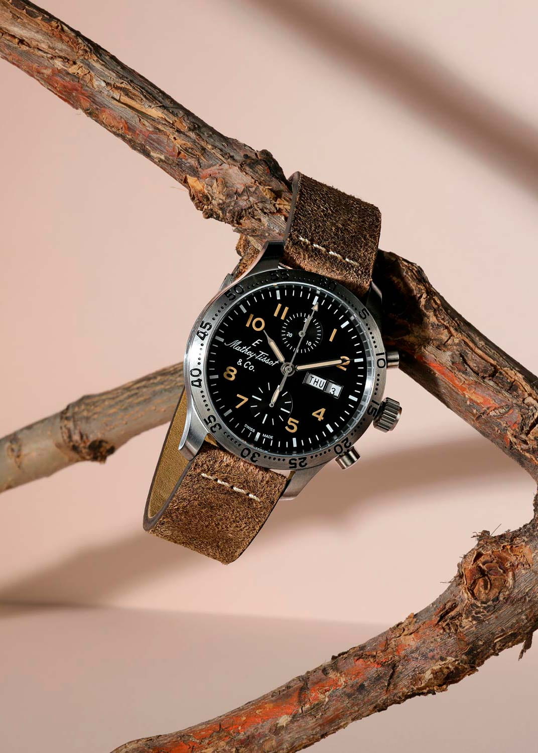 Мужские механические с автоподзаводом часы-хронографХронографФункция позволяет измерять отрезки времени с особой точностью: часы, минуты, секунды. Верным признаком хронографа является наличие на циферблате 3 дополнительных окошек-счётчиков. с секундомеромСекундомерСекундоме́р — прибор, способный измерять интервалы времени с точностью до долей секунды. Mathey-Tissot Type 21 H1821CHATLNO — это стильное сочетание элегантности и современного дизайна. Изящный корпус выполнен из нержавеющей стали, диаметром 42 мм, что придаст образу элегантности и надежности. Изысканный циферблат с метками в виде арабских цифр придает модели особый блеск. Циферблат защищен сапфировым стекломСапфировое стеклоПрочный и надёжный материал из кристалла сапфира синтетического происхождения, характеризующийся особой твёрдостью и устойчивостью к царапинам и повреждениям., обеспечивает устойчивость к царапинам. Стрелки с люминесцентным покрытиемЛюминесцентное покрытиеПозволяет считывать показания времени в темноте. Производители наносят на стрелки, часовые индексы, безель или поверхность циферблата светонакопительный состав, дающий холодное свечение.. Окошко даты находится в положении 3 часа. Кожаный ремешок на застёжке «бабочка» с кнопкамиЗастёжка "бабочка"Такой вид застёжки дополняется предохранителями, помогающими избежать случайного раскрытия браслета. Обладают изящным исполнением. , гарантирует комфортное и безопасное ношение. Рифленая заводная головка. Класс водозащиты: 50 метров позволит защитить корпус от случайных брызг или капель дождя. Mathey-Tissot — отличный выбор для тех, кто ценит утонченность и качество.