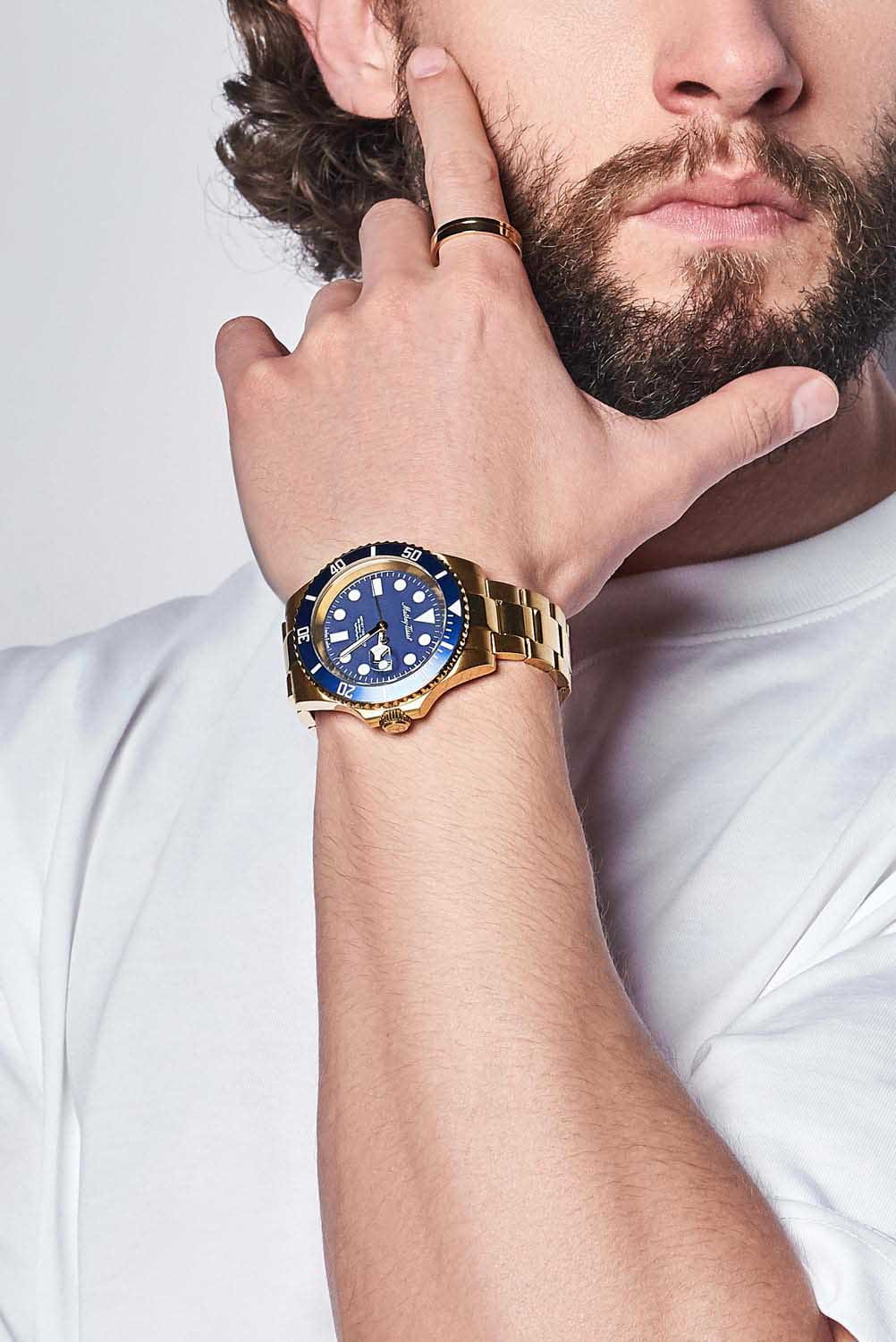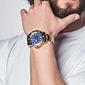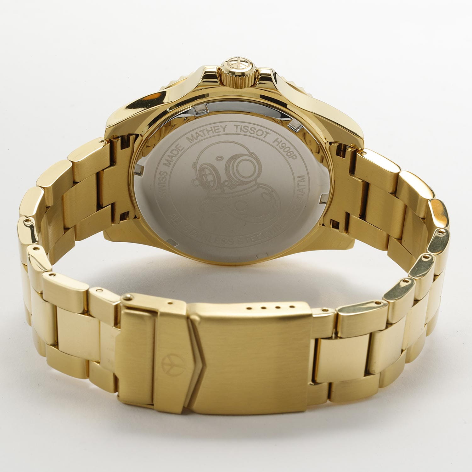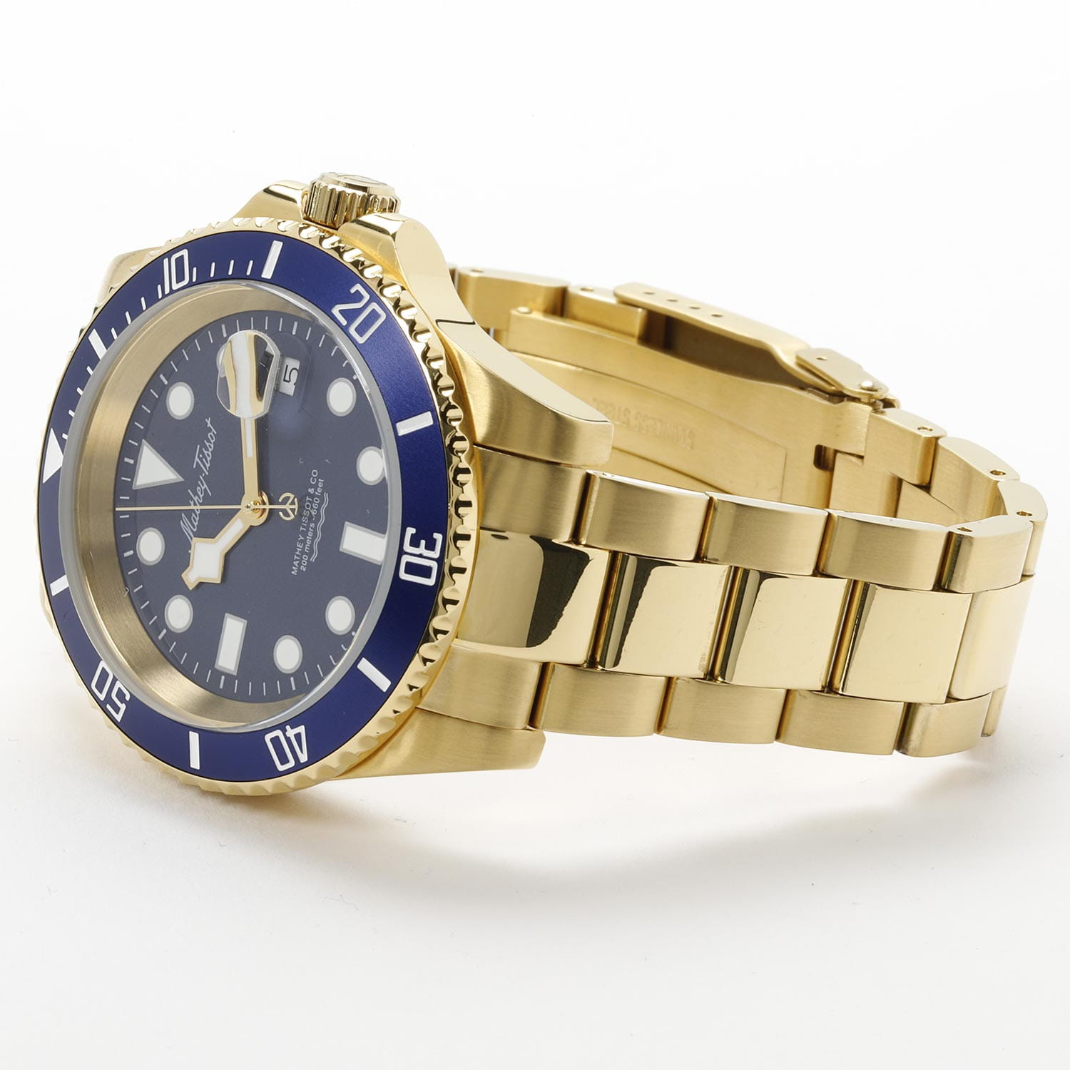 Мужские кварцевые часы Mathey-Tissot Mathy H906PBU — это стильное сочетание элегантности и современного дизайна. Изящный корпус выполнен из нержавеющей стали с PVD-покрытиемPVDУльтратонкое покрытие наносится в технике вакуумного напыления, сочетает в себе нитрид титана особой прочности со слоем золота или оксида хрома. Несёт в себе декоративную или защитную функцию. золотистого цвета, диаметром 43,5 мм, что придаст образу элегантности и надежности. Изысканный циферблат с метками в виде точек придает модели особый блеск. Циферблат защищен минеральным стекломМинеральное стеклоМинеральное стекло представляет собой искусственно выращенный минерал кварца. Такое стекло отличается особой устойчивостью к повреждениям и царапинам. Уступает по некоторым качествам сапфировому стеклу. с сапфировым покрытием, обеспечивает устойчивость к царапинам. БезельБезельВнешний ободок, закрепляющий стекло. В спортивных часах так называется поворотное кольцо с делениями на циферблате, выполняет роль таймера – замеряет отрезки времени на шкале. Неподвижный безель – элемент декора. Однонаправленно вращающийся безель на дайверских часах позволяет фиксировать моменты погружения и выныривания на поверхность. с PVD-покрытиемPVDУльтратонкое покрытие наносится в технике вакуумного напыления, сочетает в себе нитрид титана особой прочности со слоем золота или оксида хрома. Несёт в себе декоративную или защитную функцию. синего цвета. Стрелки и метки с люминесцентным покрытиемЛюминесцентное покрытиеПозволяет считывать показания времени в темноте. Производители наносят на стрелки, часовые индексы, безель или поверхность циферблата светонакопительный состав, дающий холодное свечение.. Окошко даты находится в положении 3 часа. Часы оснащены надежным кварцевым механизмом. Стальной браслет на раскладной застёжке с фиксаторомРаскладная застёжкаТакой тип застёжки используется только на браслетах из металла. Она никогда не раскрывается полностью, происходит разделение на 2 и более частей. Раскладывающая застёжка снизит вероятность потери часов к минимуму., гарантирует комфортное и безопасное ношение. Рифленая заводная головка. Класс водозащиты: 200 метров, позволит плавать нырять и заниматься другими водными видами спорта. Mathey-Tissot — отличный выбор для тех, кто ценит утонченность и качество.
