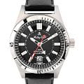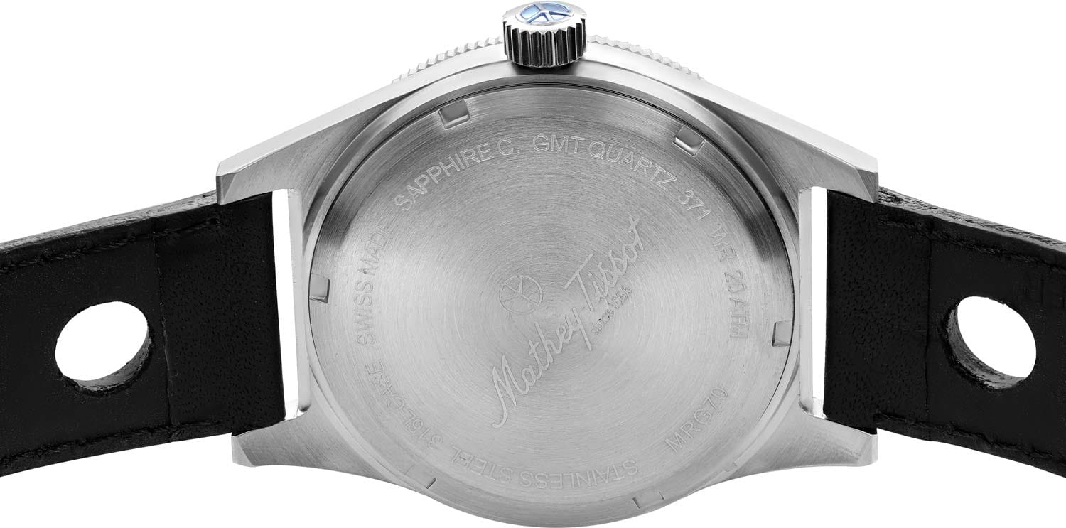 Мужские кварцевые часы Mathey-Tissot Mergulhador GMTGMTОтображение времени второго часового пояса.Такая функция особенно актуальна для путешественников и бизнесменов,которые общаются с людьми из разных стран,теперь вы всегда будете знать,какой час у вашего партнёра или близкого человека. MRGAN — это стильное сочетание элегантности и современного дизайна. Изящный корпус выполнен из нержавеющей стали, диаметром 41 мм, что придаст образу элегантности и надежности. Циферблат с метками в виде штрихов придает модели особый блеск. Циферблат защищен минеральным стекломМинеральное стеклоМинеральное стекло представляет собой искусственно выращенный минерал кварца. Такое стекло отличается особой устойчивостью к повреждениям и царапинам. Уступает по некоторым качествам сапфировому стеклу. с сапфировым покрытием, обеспечивает устойчивость к царапинам. Второй часовой поясВторой часовой поясФункция, позволяющая отображать время двух часовых поясов одновременно. в 24-х часовом формате времени отображается центральной стрелкой. Стрелки и метки с люминесцентным покрытиемЛюминесцентное покрытиеПозволяет считывать показания времени в темноте. Производители наносят на стрелки, часовые индексы, безель или поверхность циферблата светонакопительный состав, дающий холодное свечение. SuperLumiNova, которое светится в темноте после непродолжительной зарядки на свету. Окошко даты находится в положении 6 часов. Рифленый безельБезельВнешний ободок, закрепляющий стекло. В спортивных часах так называется поворотное кольцо с делениями на циферблате, выполняет роль таймера – замеряет отрезки времени на шкале. Неподвижный безель – элемент декора. Однонаправленно вращающийся безель на дайверских часах позволяет фиксировать моменты погружения и выныривания на поверхность. с минутными отметками вращается в одном направлении. Часы оснащены надежным кварцевым механизмом. Кожаный ремешок на стандартной застёжке гарантирует комфортное и безопасное ношение. Класс водозащиты: 200 метров позволит плавать, нырять и заниматься другими водными видами спорта. Mathey-Tissot — отличный выбор для тех, кто ценит утонченность и качество.