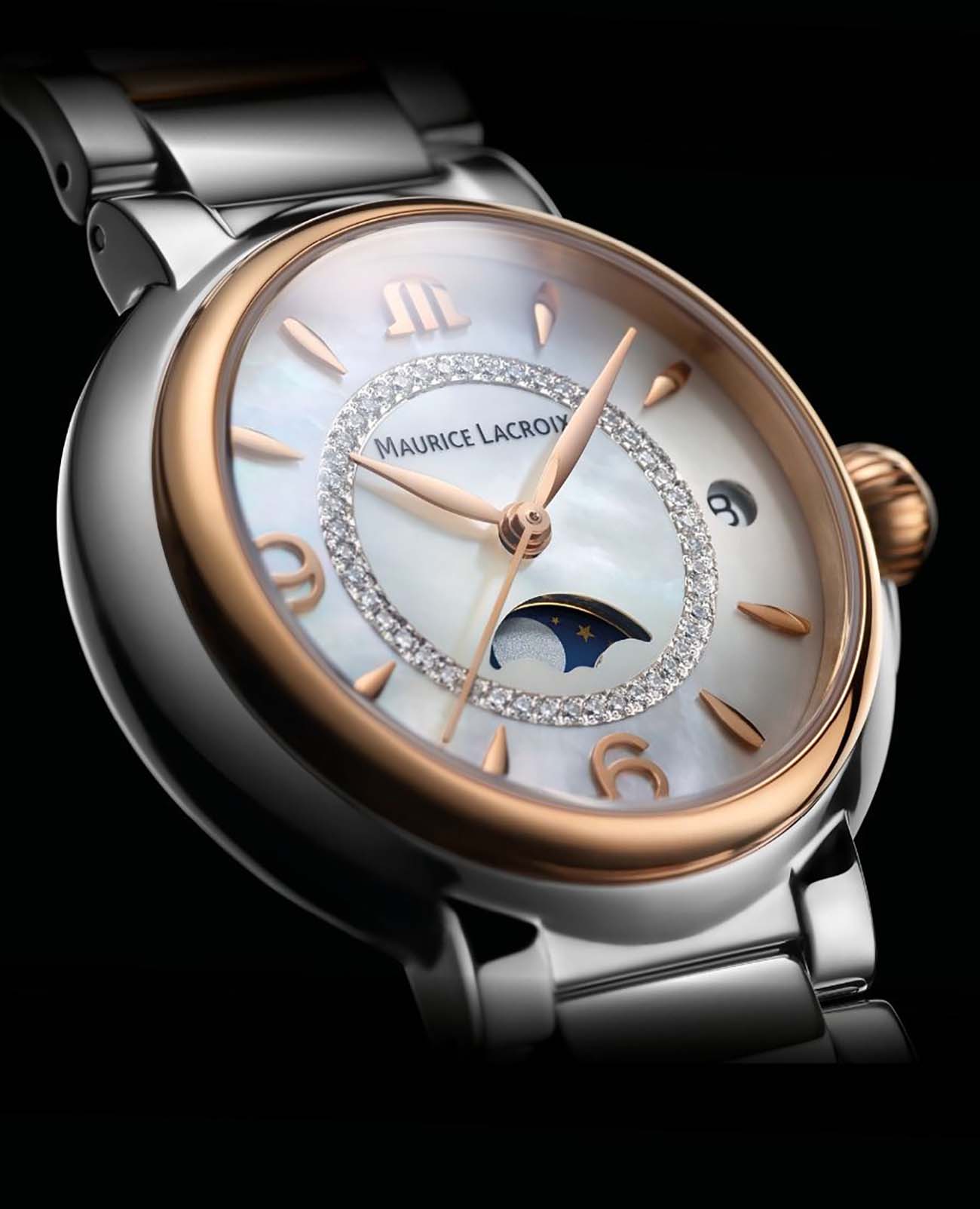 Женские швейцарские часы с бриллиантами Maurice Lacroix FIABA Date FA1084-PVP13-150-1, кварцевый механизм с высокой точностью. Сапфировое стекло устойчивое к появлению царапин, обладающее высокой прозрачностью. Класс водозащиты: 30 метров, позволит защитить корпус от случайных брызг или капель дождя. Корпус часов изготовлен из стали, разноцветного цвета.