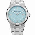 Швейцарские часы Maurice Lacroix Aikon Automatic AI6008-SS00F-431-C, воплощающие современный стиль и безупречное швейцарское качество. Корпус из нержавеющей стали диаметром 42 мм и высотой 11 мм совмещает матовую и полированную отделку, придавая часам изысканный вид. Сапфировое стеклоСапфировое стеклоПрочный и надёжный материал из кристалла сапфира синтетического происхождения, характеризующийся особой твёрдостью и устойчивостью к царапинам и повреждениям. с двойным антибликовым покрытиемАнтибликовое покрытиеСлой оксида металла в 0,13-0,3 микрон, благодаря которому стекло часов не бликует и не отражает свет. Антибликовое покрытие уменьшает отражение света в 10 раз, обеспечивая отличную читаемость показателей циферблата. надежно защищает гильошированный голубой циферблат с узором Clous de Paris. Часы снабжены задней крышкой с сапфировым стеклом, позволяющим увидеть изысканно декорированный автоматический механизм ML115, обладающий запасом хода в 38 часов. БезельБезельВнешний ободок, закрепляющий стекло. В спортивных часах так называется поворотное кольцо с делениями на циферблате, выполняет роль таймера – замеряет отрезки времени на шкале. Неподвижный безель – элемент декора. Однонаправленно вращающийся безель на дайверских часах позволяет фиксировать моменты погружения и выныривания на поверхность. с узнаваемым дизайном из шести "когтей" и завинчивающаяся заводная головка подчеркивают уверенный характер модели. Часы водонепроницаемы до 20 ATM, что делает их отличным выбором для активного образа жизни. Стрелки с люминесцентным покрытиемЛюминесцентное покрытиеПозволяет считывать показания времени в темноте. Производители наносят на стрелки, часовые индексы, безель или поверхность циферблата светонакопительный состав, дающий холодное свечение., что облегчает чтение времени даже в условиях слабого освещения. На 3 часах расположено окошко с датой, добавляющее функциональности. Часы комплектуются браслетом из нержавеющей стали, и застежка «бабочка»Застёжка "бабочка"Такой вид застёжки дополняется предохранителями, помогающими избежать случайного раскрытия браслета. Обладают изящным исполнением. , раскладывающаяся при нажатии кнопок двойной блокировки и гравировкой Maurice Lacroix завершают образ, обеспечивая удобство и стиль. Особенность этой модели - дополнительный резиновый ремешок голубого цвета со стандартной застежкой.