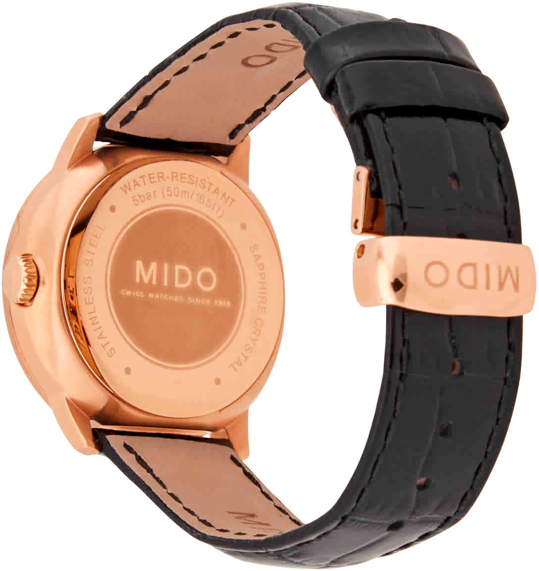 Мужские швейцарские механические часы с системой автоматического подзавода Mido Commander M016.230.36.031.00, механический механизм (автоматический калибр) с высокой точностью. Сапфировое стеклоСапфировое стеклоПрочный и надёжный материал из кристалла сапфира синтетического происхождения, характеризующийся особой твёрдостью и устойчивостью к царапинам и повреждениям. устойчивое к появлению царапин, обладающее высокой прозрачностью. Класс водозащиты: 50 метров, позволит защитить корпус от случайных брызг или капель дождя. Корпус часов изготовлен из стали с PVD-покрытиемPVDУльтратонкое покрытие наносится в технике вакуумного напыления, сочетает в себе нитрид титана особой прочности со слоем золота или оксида хрома. Несёт в себе декоративную или защитную функцию.. Кожаный ремешок с раскладной застёжкойРаскладная застёжкаТакой тип застёжки используется только на браслетах из металла. Она никогда не раскрывается полностью, происходит разделение на 2 и более частей. Раскладывающая застёжка снизит вероятность потери часов к минимуму.. Окошки дня недели и даты находятся в положении 3 часа.