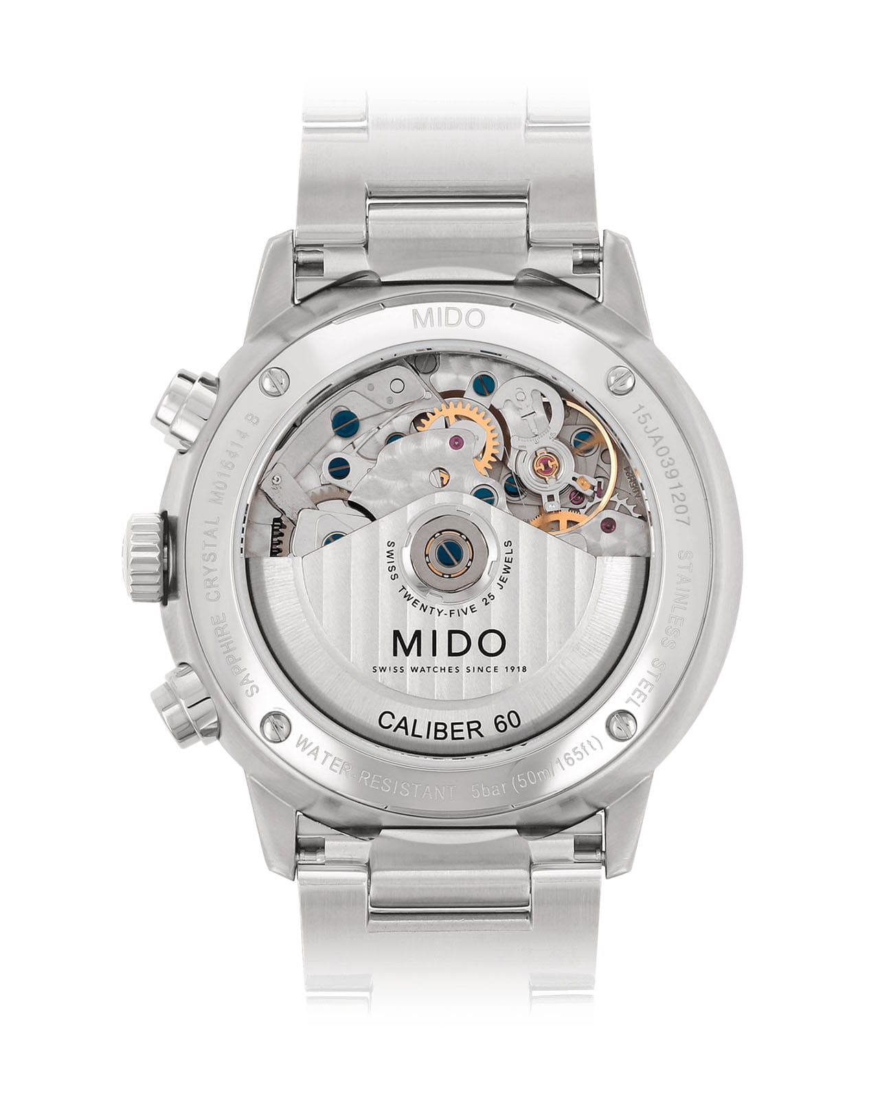 Мужские швейцарские механические часы с сапфировым стеклом Mido Commander Chronograph M016.414.11.041.00, механический механизм (автоматический калибр) с высокой точностью. Сапфировое стекло устойчивое к появлению царапин, обладающее высокой прозрачностью. Класс водозащиты: 50 метров, позволит защитить корпус от случайных брызг или капель дождя. Корпус часов изготовлен из стали, цвета.