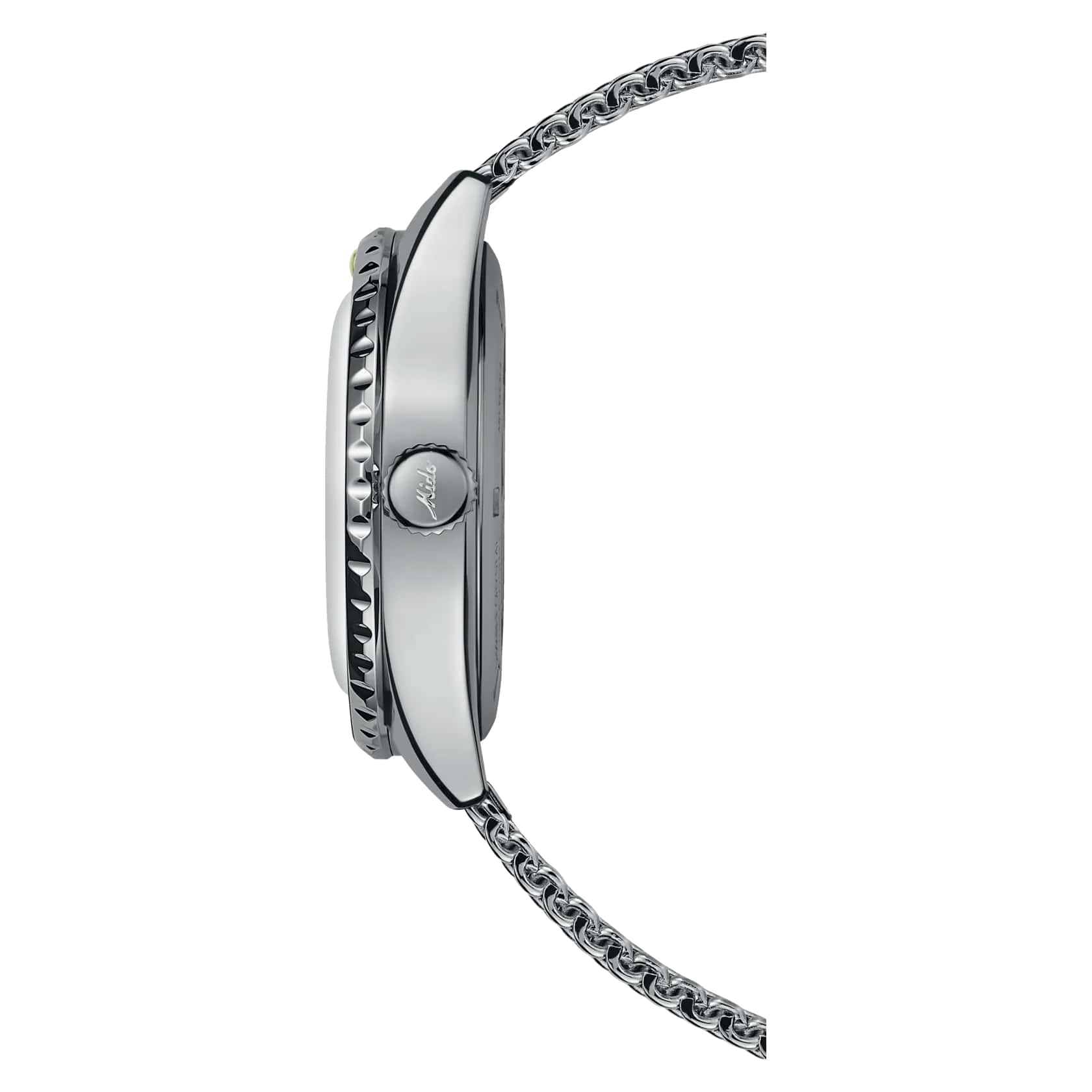 Модель оснащена автоматическим механизмом MIDO Caliber 80, обеспечивающим запас хода до 80 часов. Функционал включает индикацию часов, минут, секунд, даты в положении «3 часа» и второго часового пояса GMTGMTОтображение времени второго часового пояса.Такая функция особенно актуальна для путешественников и бизнесменов,которые общаются с людьми из разных стран,теперь вы всегда будете знать,какой час у вашего партнёра или близкого человека..
