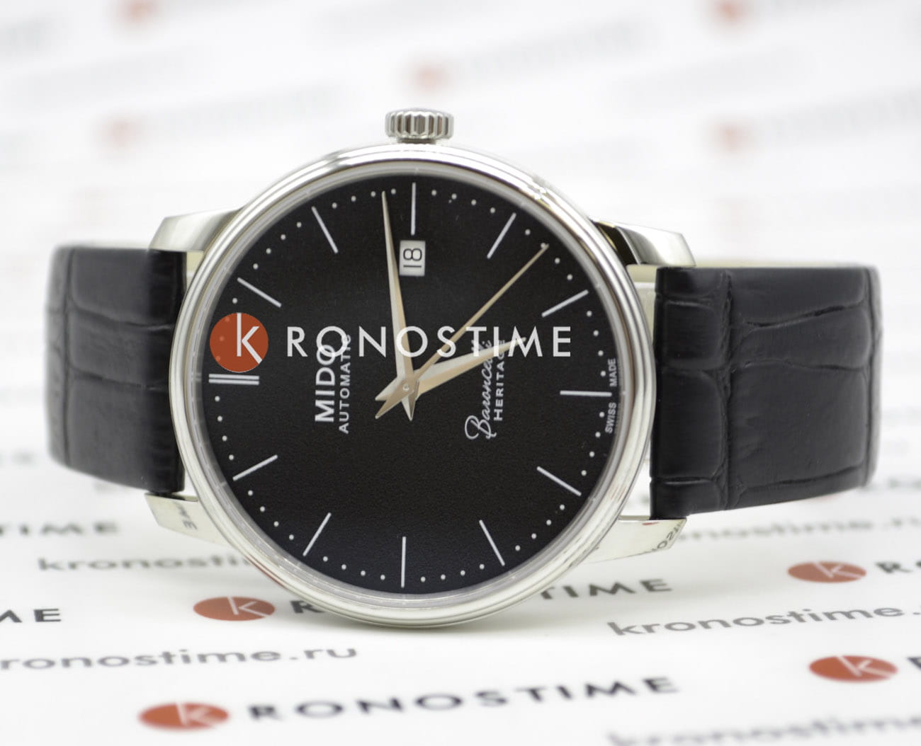 Мужские швейцарские часы Mido Baroncelli Heritage Gent M027.407.16.050.00 сочетают элегантность и высокую точность, представленные в круглом ультратонком корпусе диаметром 39 мм из нержавеющей стали с толщиной всего 6,95 мм. Модель оснащена швейцарским автоматическим механизмом Mido Caliber 1192 (на базе ETA 2892-A2), обеспечивающим запас хода 42 часа. Черный циферблат с мелкозернистой отделкой украшен гранеными стрелками, штриховыми индексами и апертурой даты на позиции 3 часа, защищен сапфировым стекломСапфировое стеклоПрочный и надёжный материал из кристалла сапфира синтетического происхождения, характеризующийся особой твёрдостью и устойчивостью к царапинам и повреждениям. с двухсторонним антибликовым покрытиемАнтибликовое покрытиеСлой оксида металла в 0,13-0,3 микрон, благодаря которому стекло часов не бликует и не отражает свет. Антибликовое покрытие уменьшает отражение света в 10 раз, обеспечивая отличную читаемость показателей циферблата. для оптимальной читаемости. Водонепроницаемость 3 бар (30 метров) защищает от брызг и дождя, а кожаный ремешок с раскладной застежкойРаскладная застёжкаТакой тип застёжки используется только на браслетах из металла. Она никогда не раскрывается полностью, происходит разделение на 2 и более частей. Раскладывающая застёжка снизит вероятность потери часов к минимуму. обеспечивает комфортную посадку на запястье. У часов прозрачная задняя крышка, демонстрирующая отделку механизма узорами "Côtes de Genève".