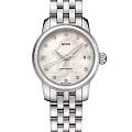 Mido Baroncelli Lady Twenty Five M039.007.11.106.00 — утончённые женские часы, созданные для тех, кто ценит изящество и швейцарскую точность. Корпус диаметром 25 мм выполнен из полированной нержавеющей стали и гармонично сочетается с пятизвенным браслетом, дополненным раскладной застёжкойРаскладная застёжкаТакой тип застёжки используется только на браслетах из металла. Она никогда не раскрывается полностью, происходит разделение на 2 и более частей. Раскладывающая застёжка снизит вероятность потери часов к минимуму.. Циферблат из натурального перламутра украшен двенадцатью бриллиантами-часовыми метками, создающими игру света и подчеркивающими утончённый характер модели. Защиту обеспечивает сапфировое стеклоСапфировое стеклоПрочный и надёжный материал из кристалла сапфира синтетического происхождения, характеризующийся особой твёрдостью и устойчивостью к царапинам и повреждениям. с надёжным антибликовым покрытиемАнтибликовое покрытиеСлой оксида металла в 0,13-0,3 микрон, благодаря которому стекло часов не бликует и не отражает свет. Антибликовое покрытие уменьшает отражение света в 10 раз, обеспечивая отличную читаемость показателей циферблата., что гарантирует отличную читаемость в любых условиях. Прозрачная задняя крышка открывает вид на тщательно декорированный ротор, что придаёт часам дополнительное очарование. Водозащита до 50 метров делает модель практичной для повседневного ношения, сохраняя при этом её ювелирную элегантность.