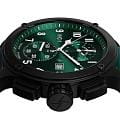 Мужские кварцевые часы — это стильный и функциональный аксессуар с хронографом. Корпус диаметром 44 мм выполнен из нержавеющей стали 316L с IP-покрытиемIP-покрытиеМетод ионного напыления. Демонстрирует повышенную устойчивость к истиранию, окислению и химическим веществам. Под воздействием высокого давления и температуры около 1500°C молекулы металла надёжно соединяются с частицами корпуса часов., включая безельБезельВнешний ободок, закрепляющий стекло. В спортивных часах так называется поворотное кольцо с делениями на циферблате, выполняет роль таймера – замеряет отрезки времени на шкале. Неподвижный безель – элемент декора. Однонаправленно вращающийся безель на дайверских часах позволяет фиксировать моменты погружения и выныривания на поверхность., кнопки и заводную головку. Циферблат зелёного цвета оформлен индексами и стрелками. Стрелки и метки с люминесцентным покрытиемЛюминесцентное покрытиеПозволяет считывать показания времени в темноте. Производители наносят на стрелки, часовые индексы, безель или поверхность циферблата светонакопительный состав, дающий холодное свечение. Super-LumiNova, обеспечивающим хорошую читаемость в темноте. Циферблат защищён сапфировым стекломСапфировое стеклоПрочный и надёжный материал из кристалла сапфира синтетического происхождения, характеризующийся особой твёрдостью и устойчивостью к царапинам и повреждениям.. Механизм — швейцарский кварцевый калибр Ronda 3520.D с функциями хронографаХронографФункция позволяет измерять отрезки времени с особой точностью: часы, минуты, секунды. Верным признаком хронографа является наличие на циферблате 3 дополнительных окошек-счётчиков. и секундомераСекундомерСекундоме́р — прибор, способный измерять интервалы времени с точностью до долей секунды.. Часы оснащены кожаным ремешком зелёного цвета с классической пряжкой. Водонепроницаемость 100 м позволяет использовать часы для плавания и повседневного ношения. Идеальный выбор для тех, кто ценит точность, качество и выразительный дизайн.