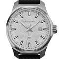 Мужские механические часы с автоподзаводом — это надёжный аксессуар от легендарного бренда «МОЛНИЯ», созданный на Челябинском часовом заводе. Корпус диаметром 42 мм выполнен из нержавеющей стали 316L с зеркальной полировкой. БезельБезельВнешний ободок, закрепляющий стекло. В спортивных часах так называется поворотное кольцо с делениями на циферблате, выполняет роль таймера – замеряет отрезки времени на шкале. Неподвижный безель – элемент декора. Однонаправленно вращающийся безель на дайверских часах позволяет фиксировать моменты погружения и выныривания на поверхность. также выполнен из стали с зеркальной отделкой. Циферблат белого цвета оформлен индексами и стрелками. Окошко даты расположено в положении 3 часов. Стрелки и метки с люминесцентным покрытиемЛюминесцентное покрытиеПозволяет считывать показания времени в темноте. Производители наносят на стрелки, часовые индексы, безель или поверхность циферблата светонакопительный состав, дающий холодное свечение. Super-LumiNova, обеспечивающим хорошую читаемость в темноте. Циферблат защищён сапфировым стекломСапфировое стеклоПрочный и надёжный материал из кристалла сапфира синтетического происхождения, характеризующийся особой твёрдостью и устойчивостью к царапинам и повреждениям. с антибликовым покрытиемАнтибликовое покрытиеСлой оксида металла в 0,13-0,3 микрон, благодаря которому стекло часов не бликует и не отражает свет. Антибликовое покрытие уменьшает отражение света в 10 раз, обеспечивая отличную читаемость показателей циферблата.. Механизм — японский автоматический калибр Miyota 8215 с функцией и запасом хода до 42 часов. Прозрачная задняя крышка позволяет наблюдать за работой механизма с кастомным ротором. Часы оснащены кожаным ремешком чёрного цвета с подкладкой из фтористого каучука и классической пряжкой, а также системой быстрой замены. Водонепроницаемость 100 м позволяет использовать часы для плавания и повседневного ношения. Идеальный выбор для тех, кто ценит качество, точность и стиль.